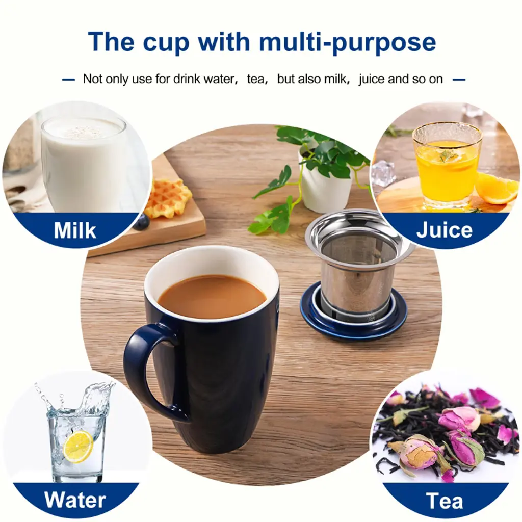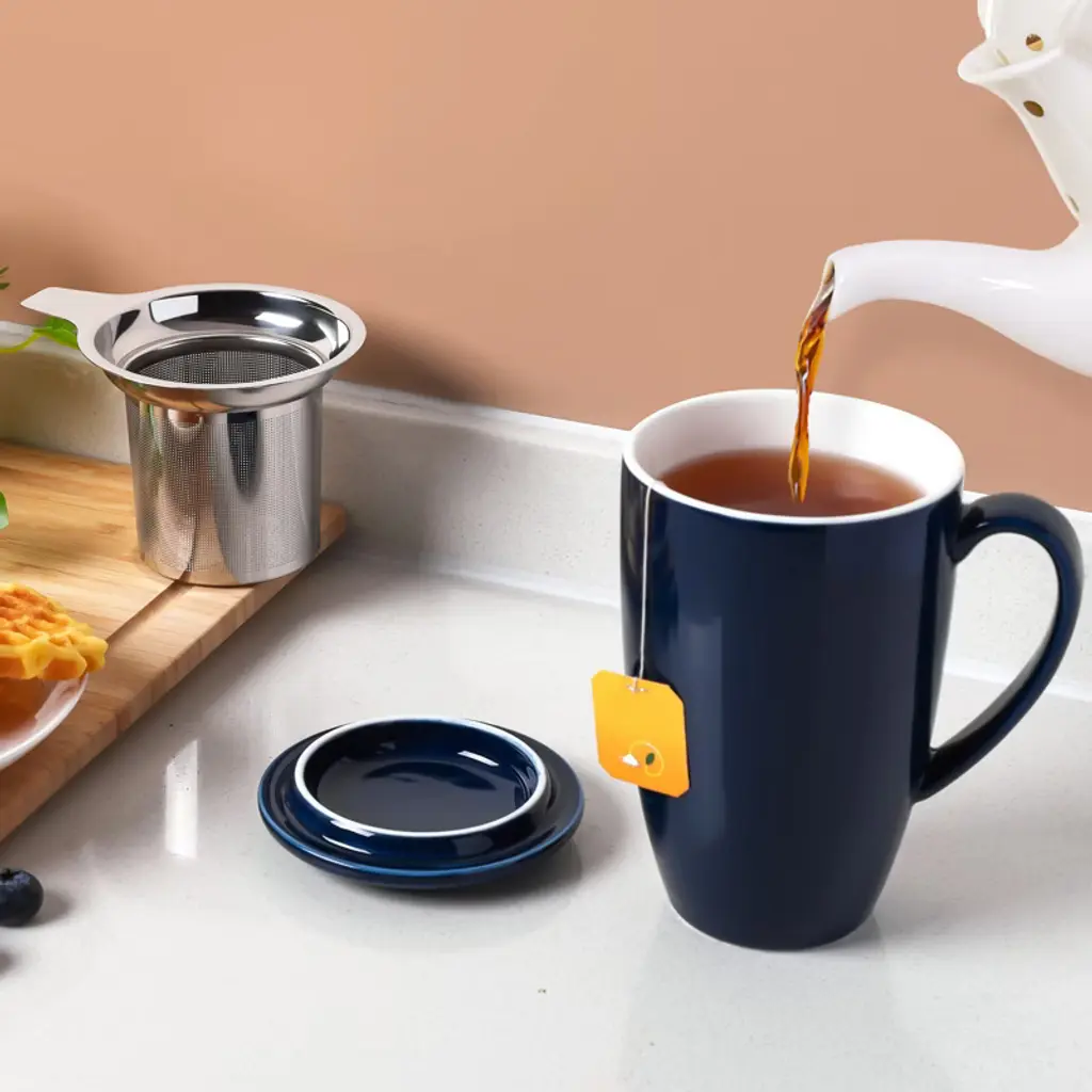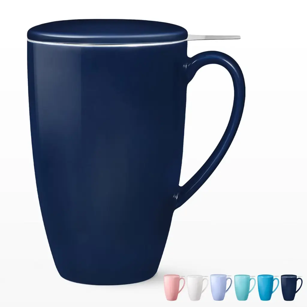 Enjoy your favorite hot drinks with the COZONY ceramic tea cup with removable infuser and lid, designed for brewing loose leaf tea, coffee, cocoa, or milk with ease. Its 16 oz capacity makes it perfect for daily use, while the microwave-safe and durable ceramic construction ensures both convenience and long-lasting quality. Featuring a stylish lid to retain heat and a fine mesh infuser for a smooth brew, this tea mug is an ideal choice for home, office, or as a thoughtful gift for tea lovers.