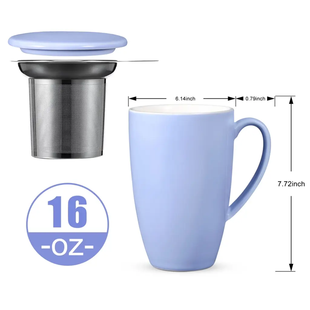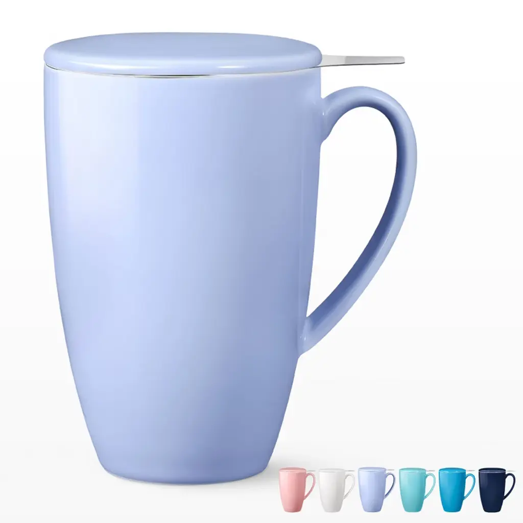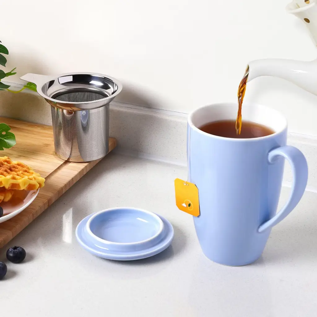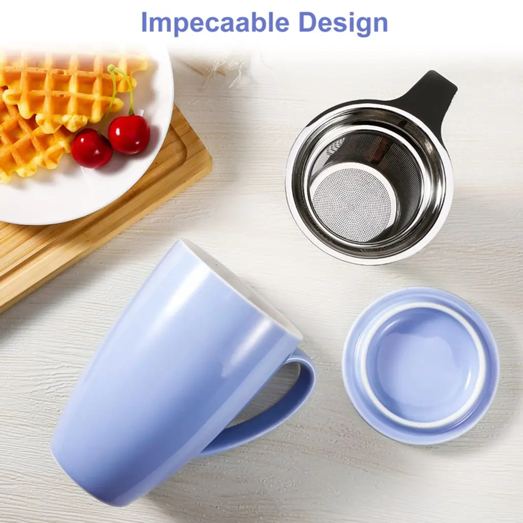 Enjoy your favorite hot drinks with the COZONY ceramic tea cup with removable infuser and lid, designed for brewing loose leaf tea, coffee, cocoa, or milk with ease. Its 16 oz capacity makes it perfect for daily use, while the microwave-safe and durable ceramic construction ensures both convenience and long-lasting quality. Featuring a stylish lid to retain heat and a fine mesh infuser for a smooth brew, this tea mug is an ideal choice for home, office, or as a thoughtful gift for tea lovers.