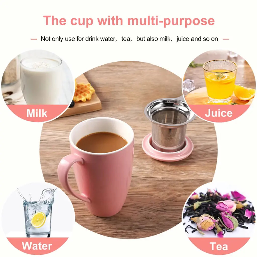 Enjoy your favorite hot drinks with the COZONY ceramic tea cup with removable infuser and lid, designed for brewing loose leaf tea, coffee, cocoa, or milk with ease. Its 16 oz capacity makes it perfect for daily use, while the microwave-safe and durable ceramic construction ensures both convenience and long-lasting quality. Featuring a stylish lid to retain heat and a fine mesh infuser for a smooth brew, this tea mug is an ideal choice for home, office, or as a thoughtful gift for tea lovers.