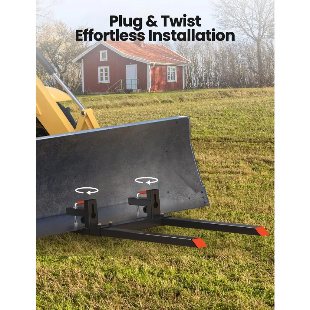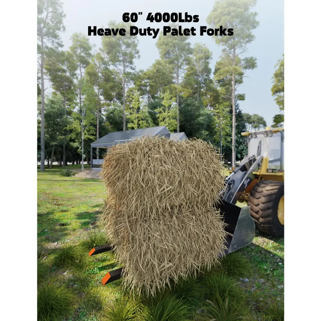 Upgrade your tractor's versatility with these professional-grade clamp-on pallet forks, available in two size and capacity configurations. The 47" model handles up to 2000lbs, while the 60" version manages 4000lb loads - both featuring an adjustable stabilizer bar for secure material handling. Constructed from reinforced high-tensile steel, these forks bolt directly to your existing bucket without welding. The universal design fits most tractor loaders and skid steers, transforming your equipment for multiple farming and landscaping tasks.