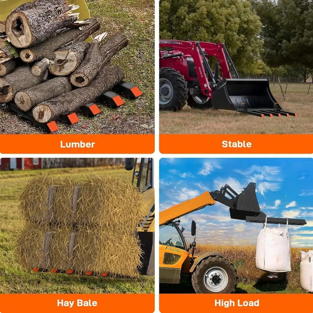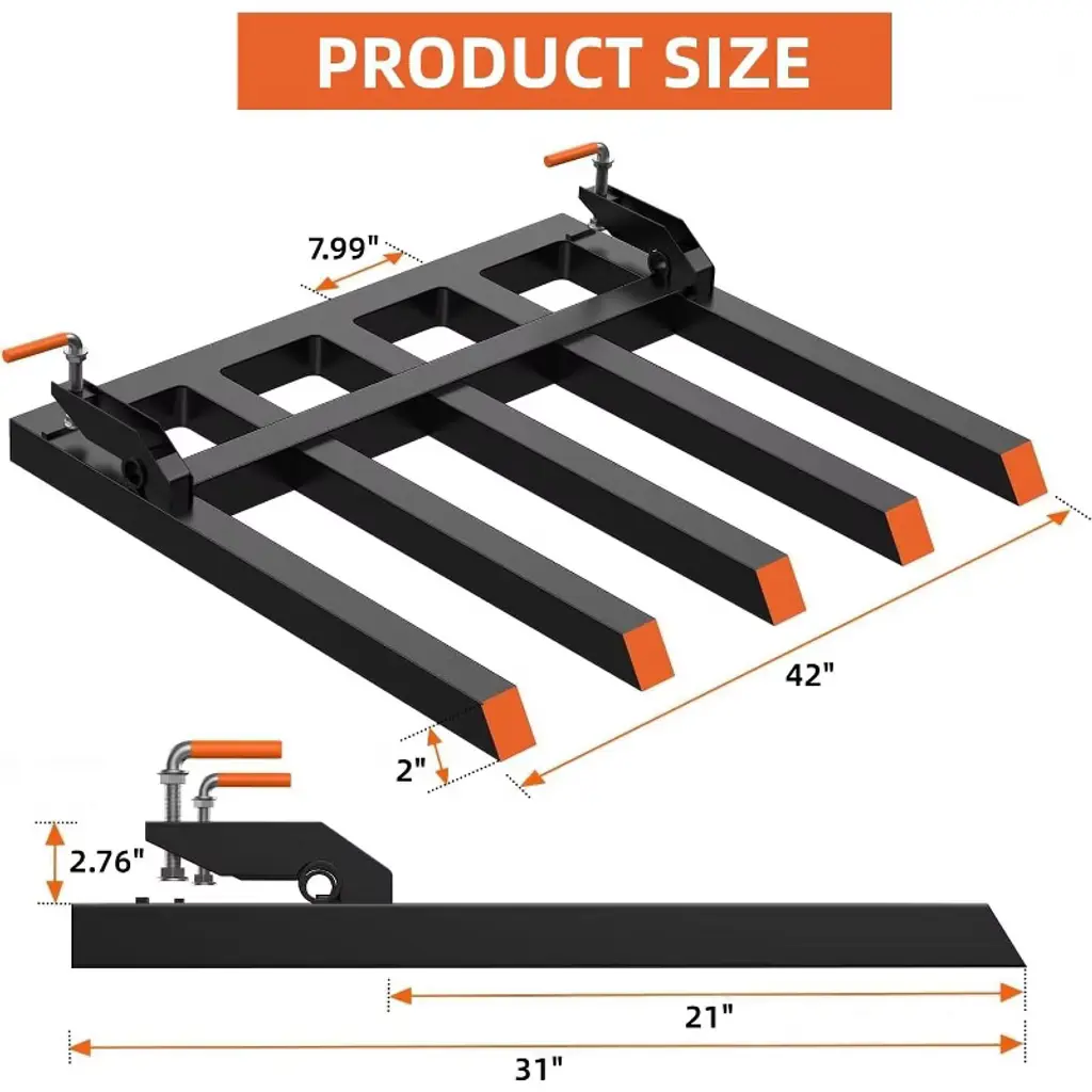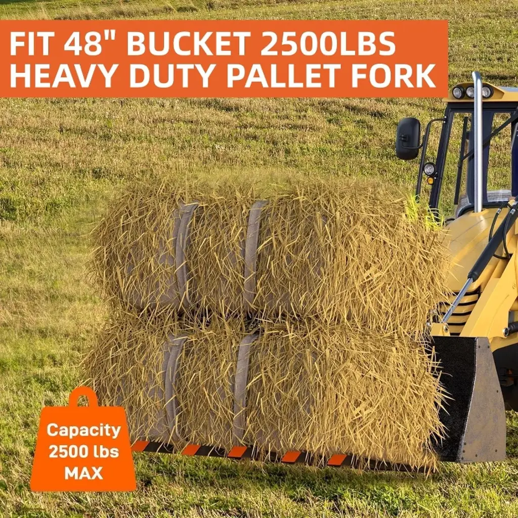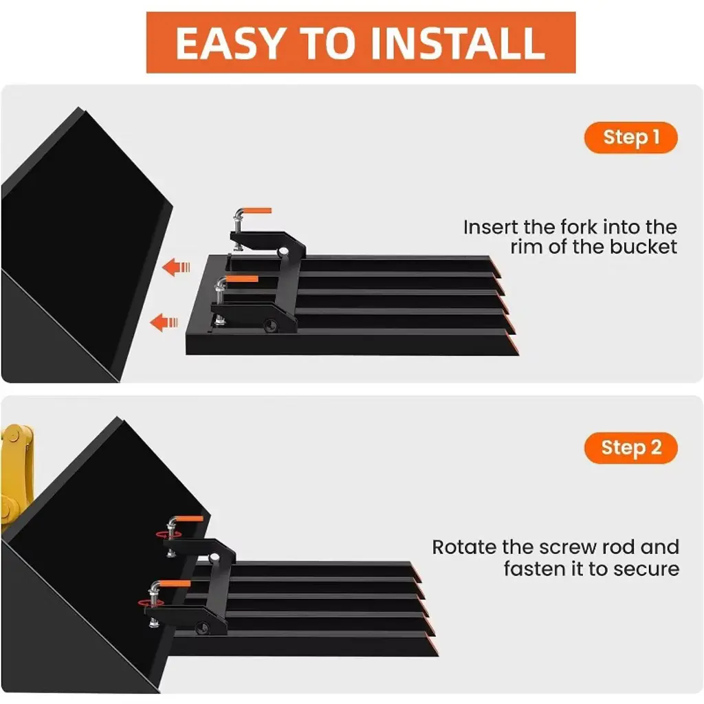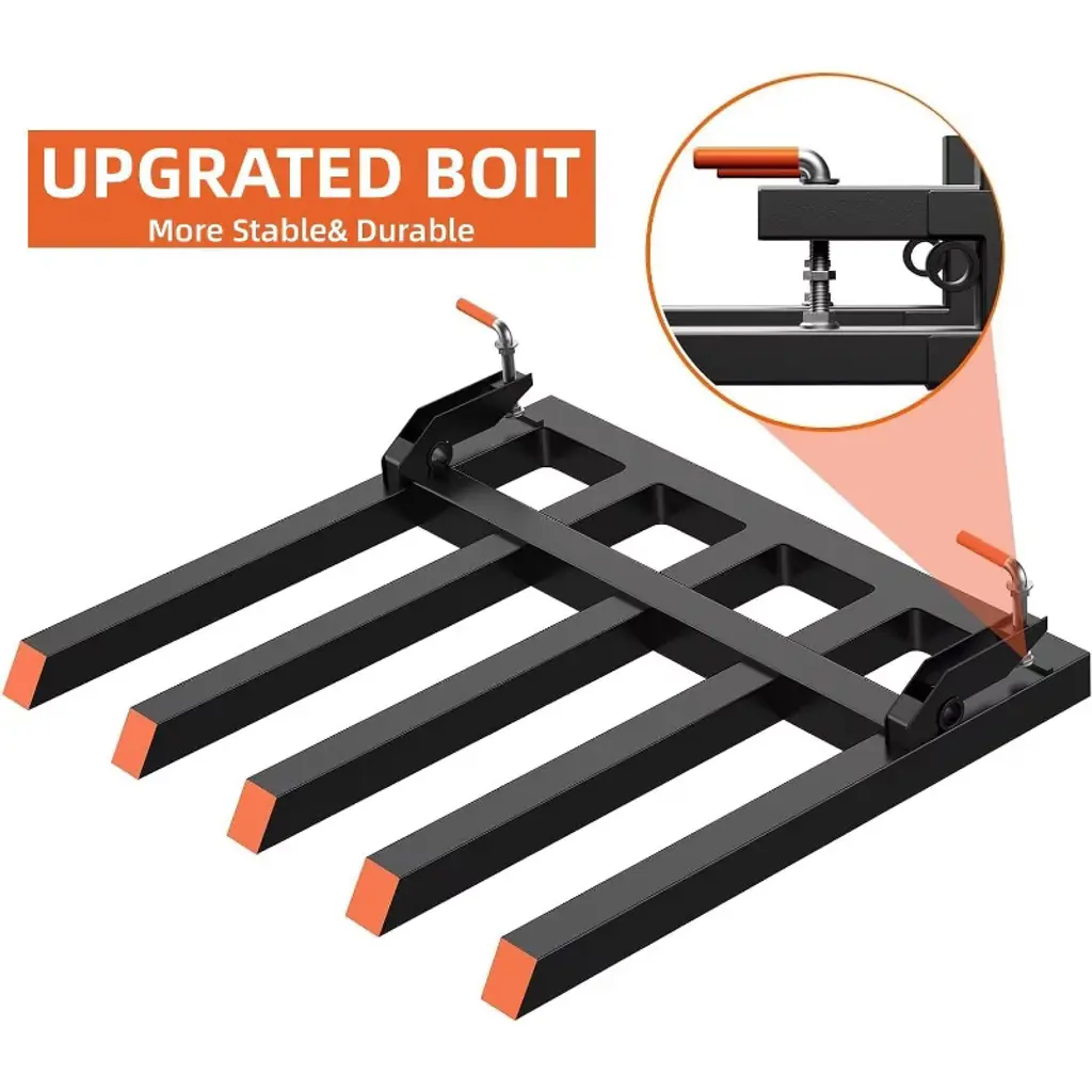 Upgrade your tractor or skid steer with COZONY Clamp On Debris Forks for 48" buckets—engineered for high performance in heavy-duty farm, warehouse, and construction tasks. With a 2,500 lbs capacity and robust Q235 steel construction, these versatile 5-tine forks offer reliable stacking, loading, and short-distance transport of palletized loads, logs, brush, and more. The powder-coated black finish ensures superior durability, while upgraded thickened bolts and an easy clamp-on design deliver fast installation and confident, secure operation. Perfect for demanding projects where speed, safety, and versatility matter.