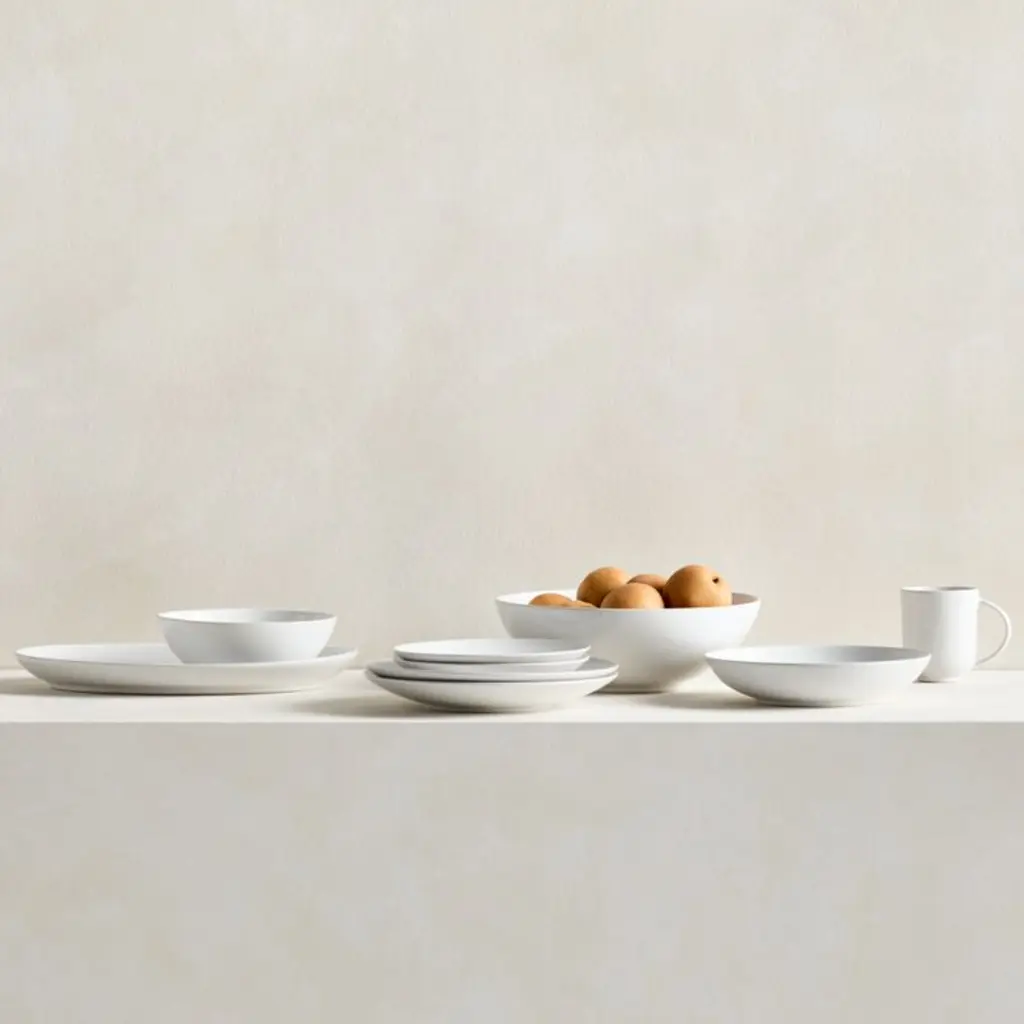Our customers love our bestselling Craft dinnerware and serveware collection as much as we do, so when they requested a glossy white finish we were only too happy to accommodate. Mix and match this fresh new version with the matte Craft colors, or style with our other white dishes. A study in delicious contradictions, our Craft dinner plate is strong and durable yet light and refined to suit everyday use and elegant occasions. The bright white glaze highlights the plate's clean coupe curves while resisting scratches. Complete the inviting look with our Craft table linens.