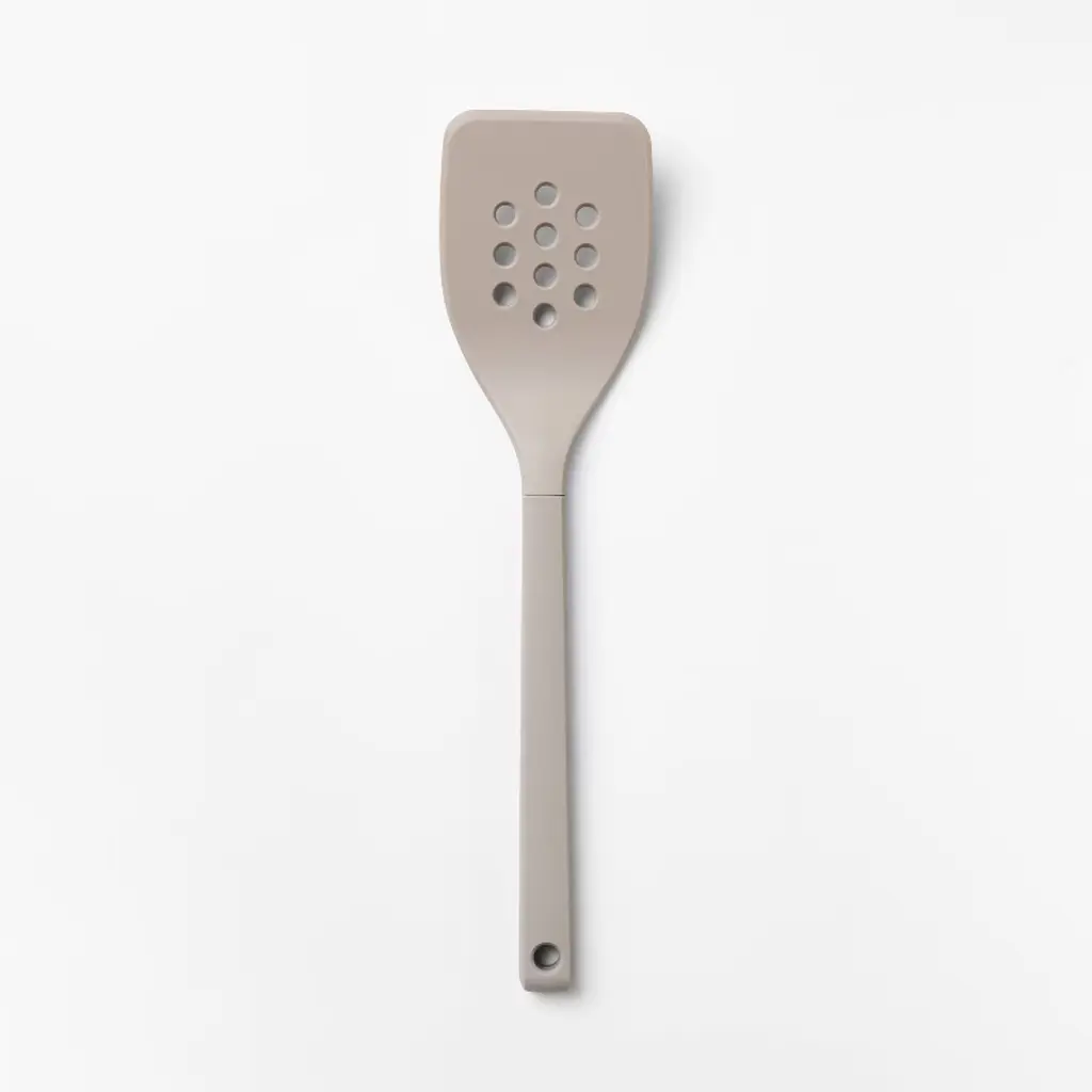 Crate & Barrel Grey Silicone Deep Slotted Spoon