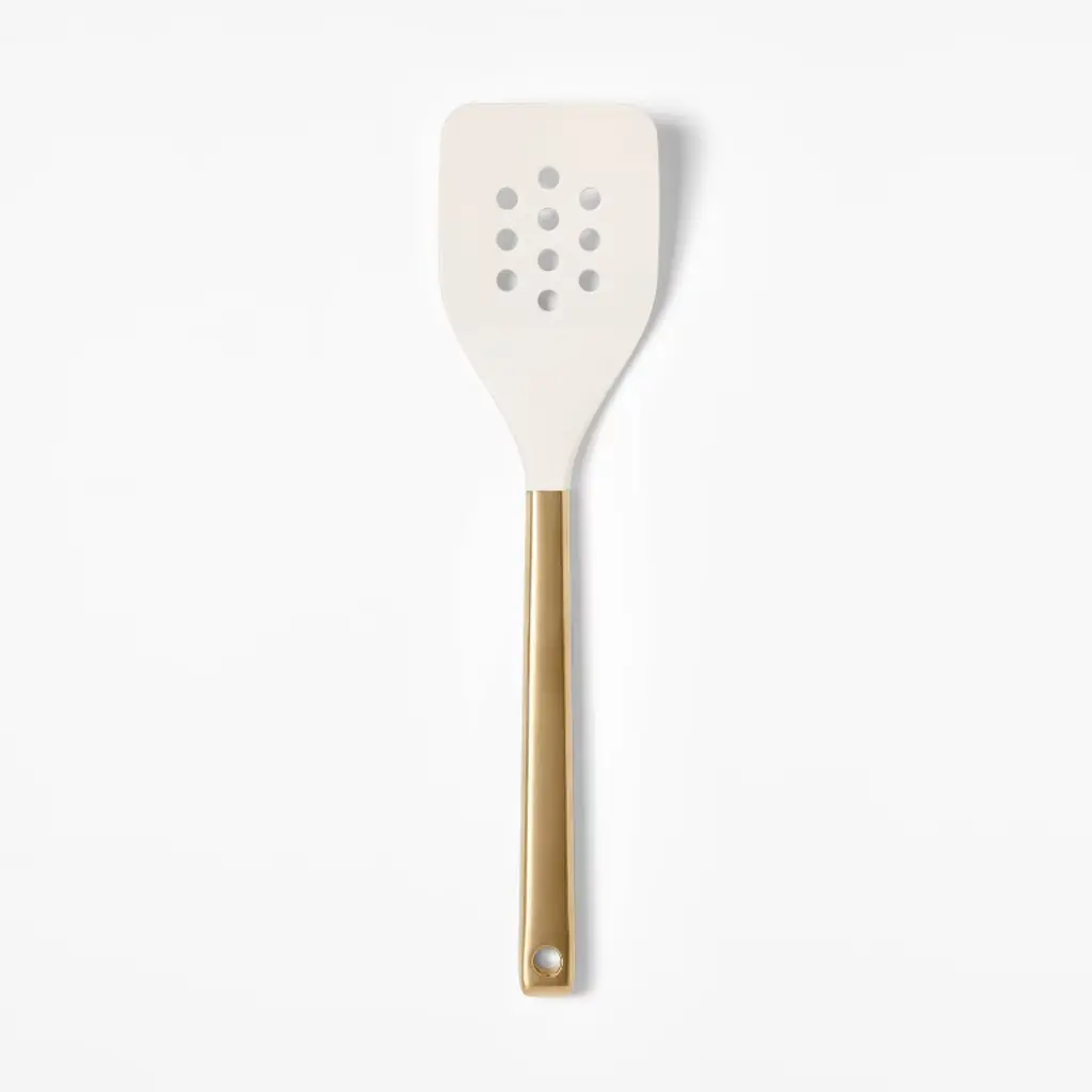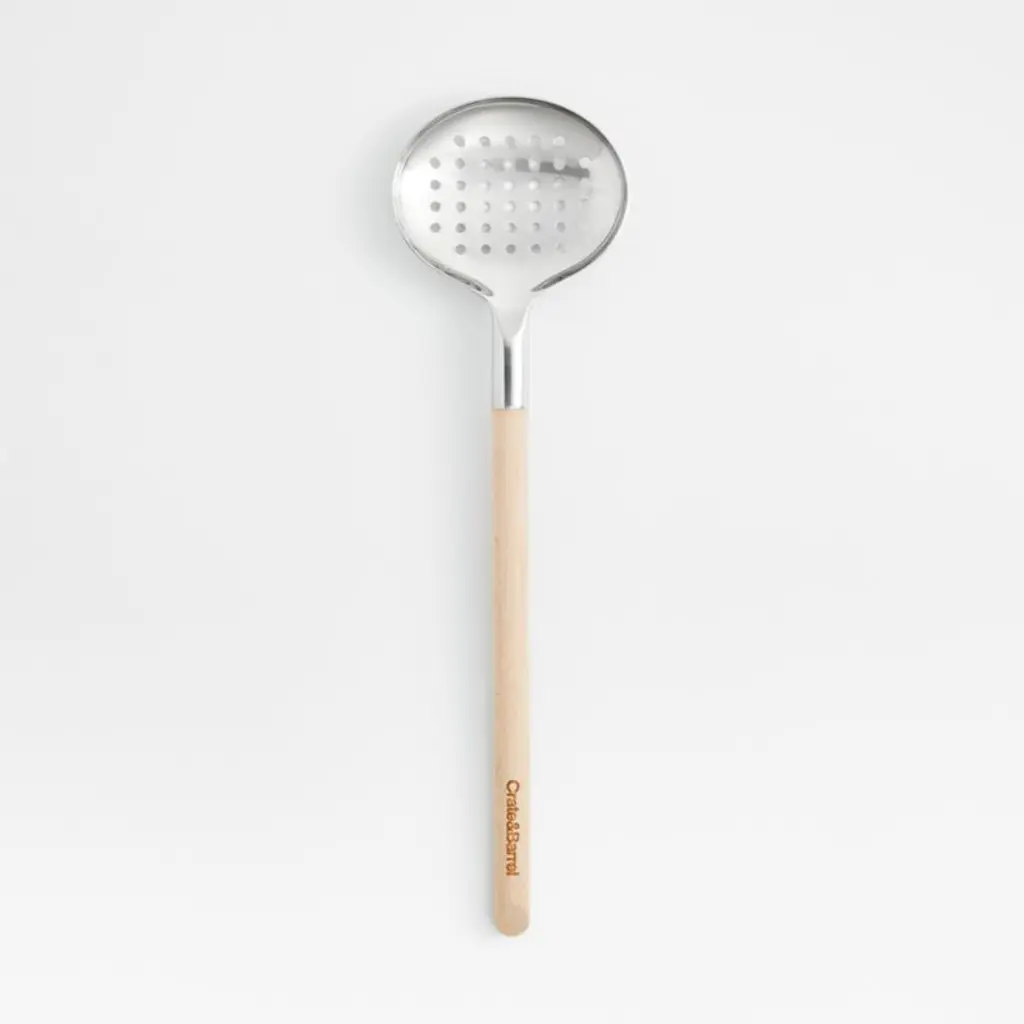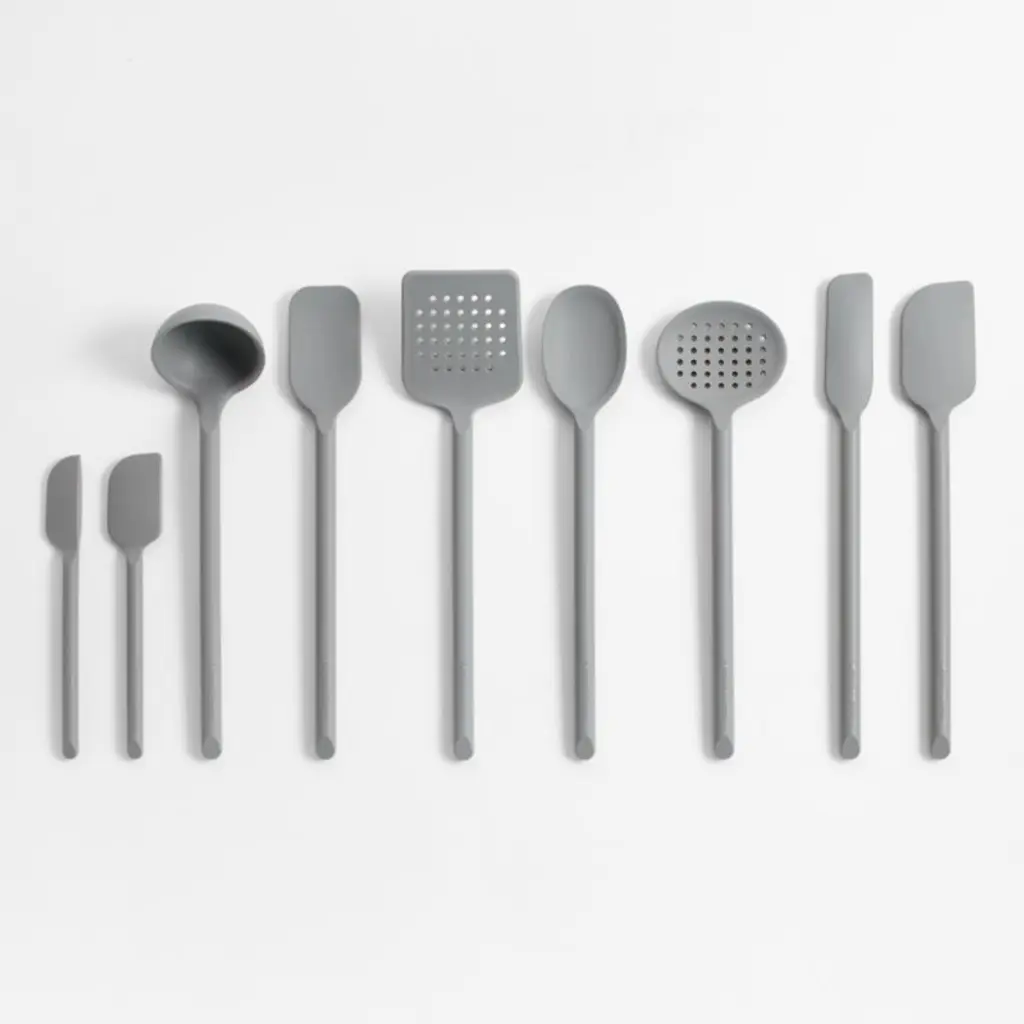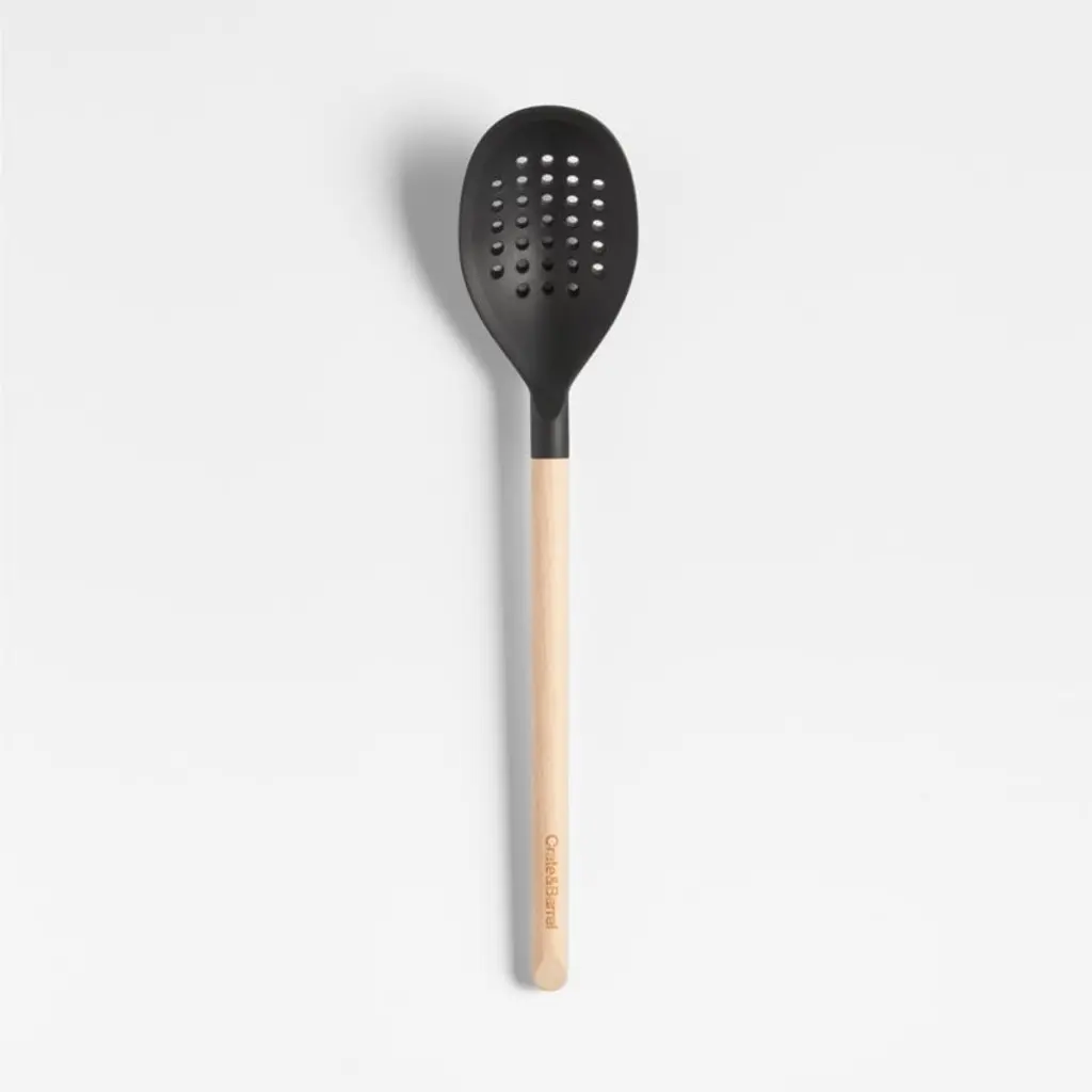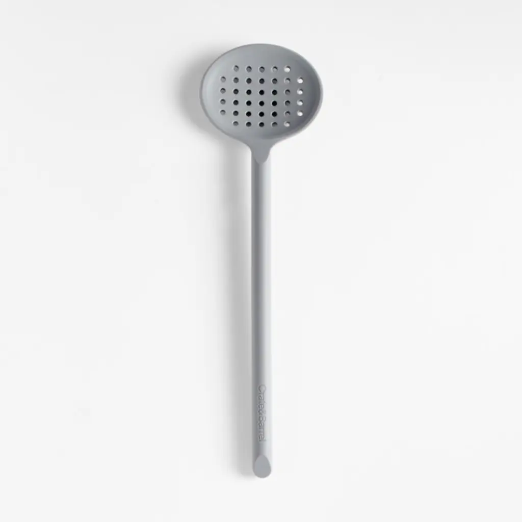 Stir, scoop and serve dumplings, pasta and peas with our signature grey silicone deep slotted spoon. Constructed with a nylon core for strength, the double-capacity spoon is generously sized to scoop and serve with perforations that allow liquids to drain away. Soft-touch silicone won't damage non-stick pans and resists stains, scratches and heat up to 600 degrees. We love the way the refined beveled edge finishes the elongated handle with a dynamic detail. Combine the dishwasher-safe deep slotted spoon with the other exquisitely proportioned utensils in our exclusive Crate & Barrel collection for a well-outfitted workspace that's up to any cooking challenge.Direct from our design team to your kitchen, the sophisticated assortment in our signature The Kitchen by Crate line combines beautiful simplicity and peerless performance. From initial sketches to rigorous testing, every expertly designed product in this kitchen collection meets our standards, and yours.View all "The Kitchen by Crate" collection