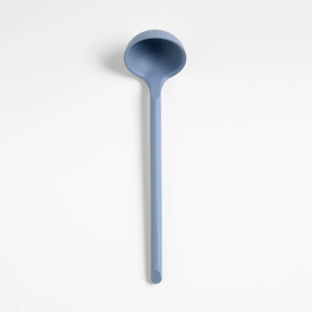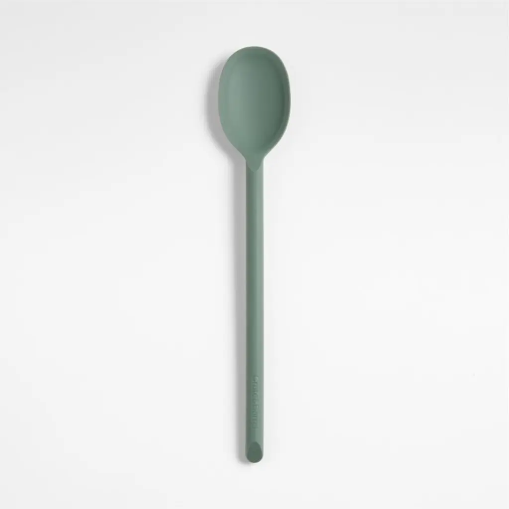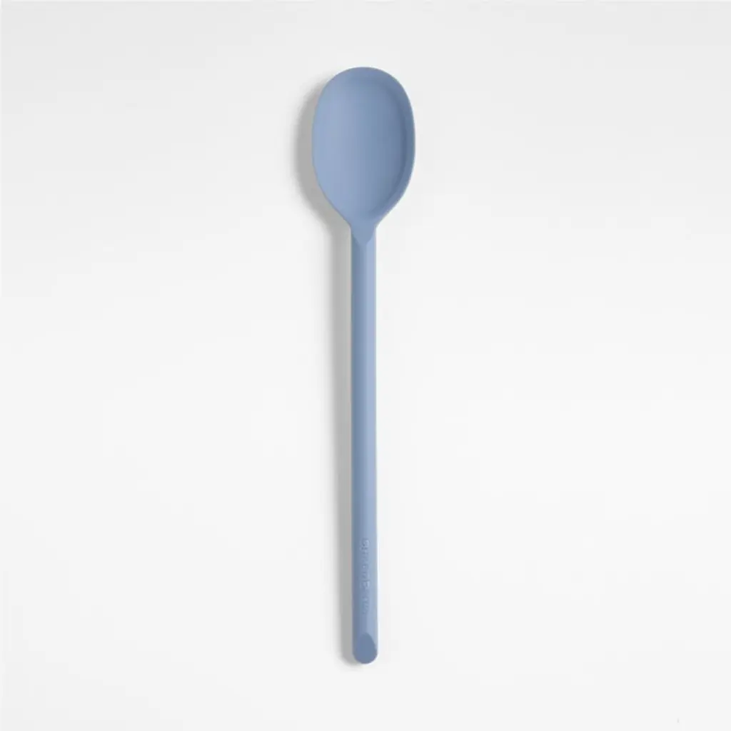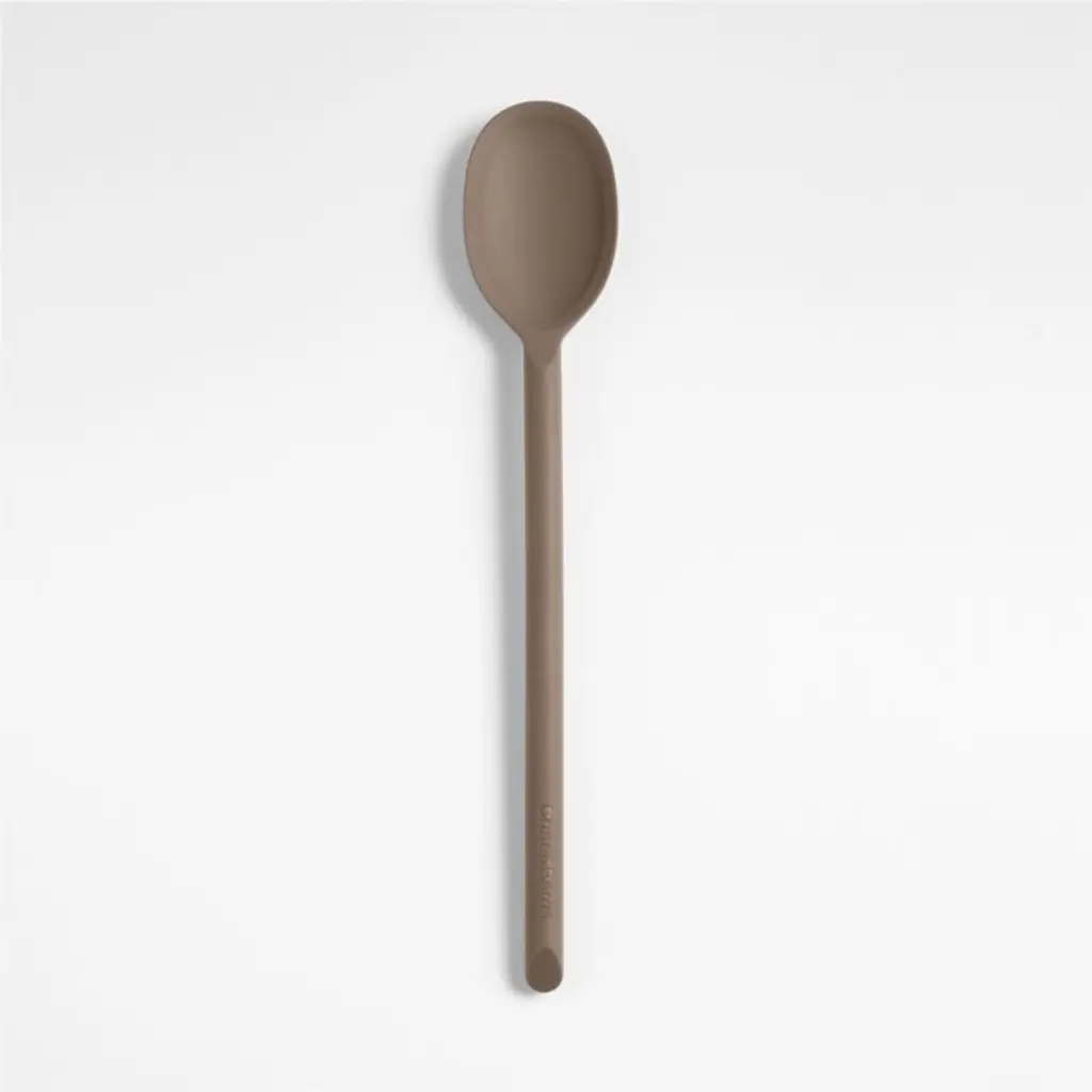 Stir, scoop and serve with our signature grey silicone spoon. Constructed with a nylon core for strength, the grey silicone utensil ably stirs the thickest sauces, doughs and battersor folds the most delicate meringues. Its flexible, tapered edges scrape the bowl, blender or pan perfectly clean, and soft-touch silicone won't damage non-stick cookware and resists stains, scratches and heat up to 600 degrees. We love the way the refined beveled edge finishes the elongated handle with a dynamic detail. Combine the dishwasher-safe spoon with the other exquisitely proportioned utensils in our exclusive Crate & Barrel collection for a well-outfitted workspace that's up to any cooking challenge.View all "The Kitchen by Crate" collection