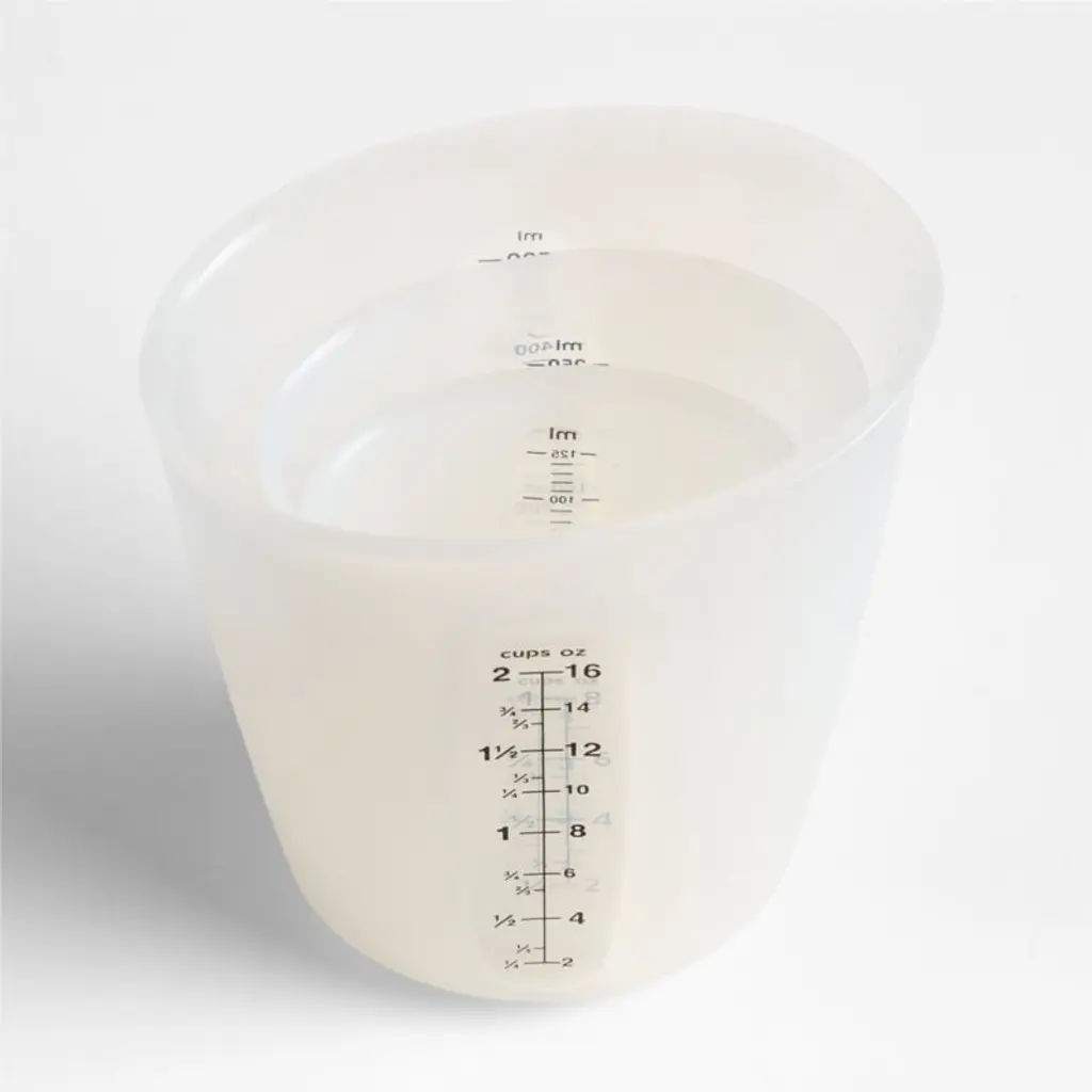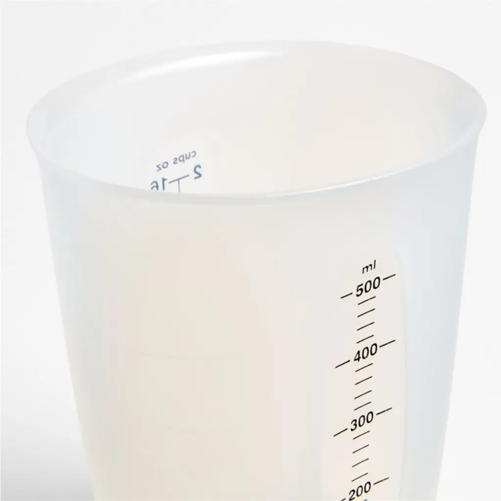 Our innovative measuring cup set makes it easy to measure liquids for cooking, baking and cocktail making. Crafted of translucent silicone for a clear view of contents, the cups are clearly marked with milliliters and ounces in crisp black. To pour your measured-out oil, milk, broth or vinegar, simply squeeze the cup to create a pour spout. The three cups clean up easily in the dishwasher and nest neatly for compact storage.