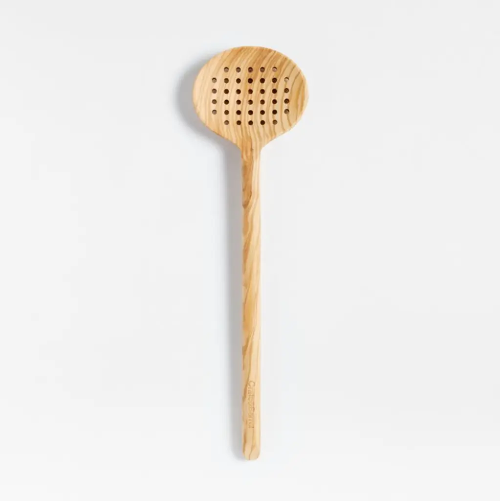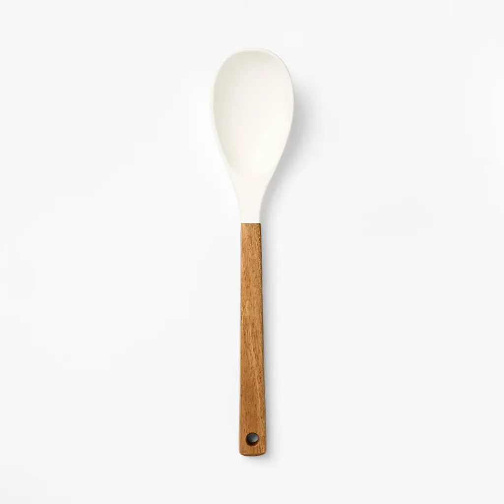 Crate & Barrel White Silicone And Wood Deep Spoon
