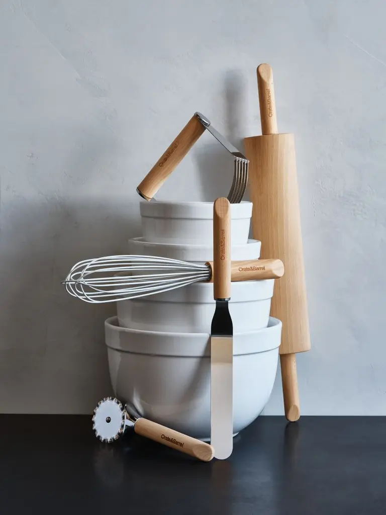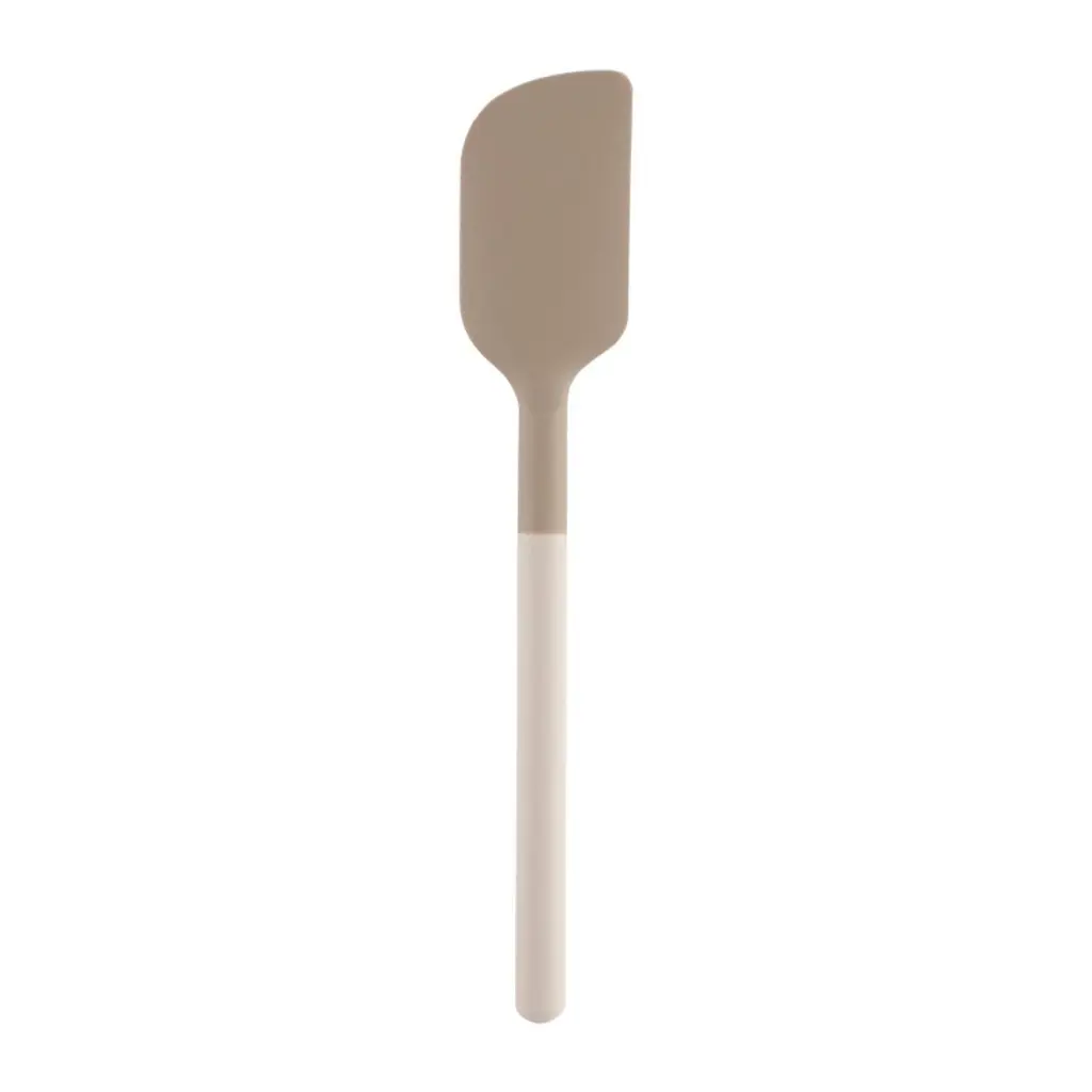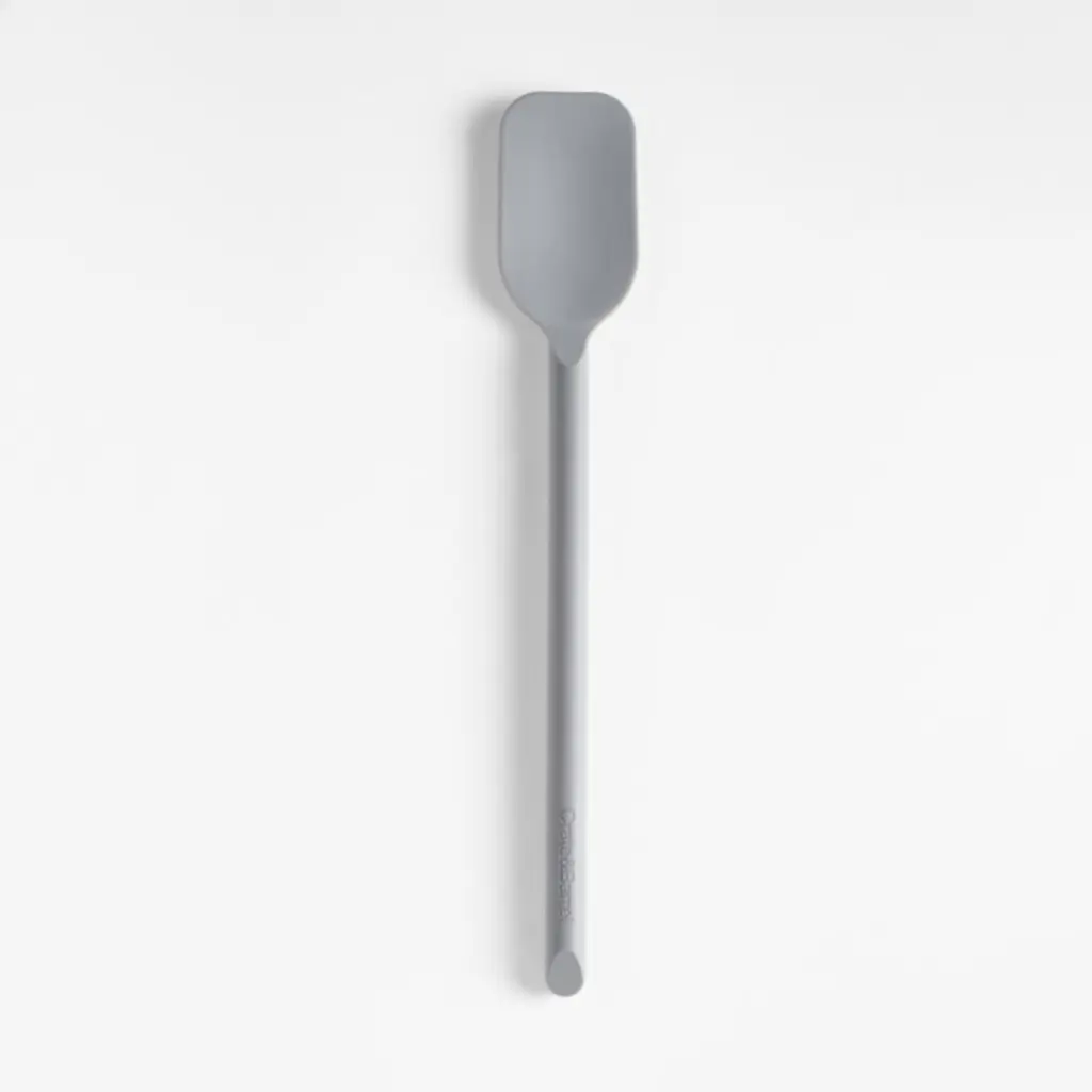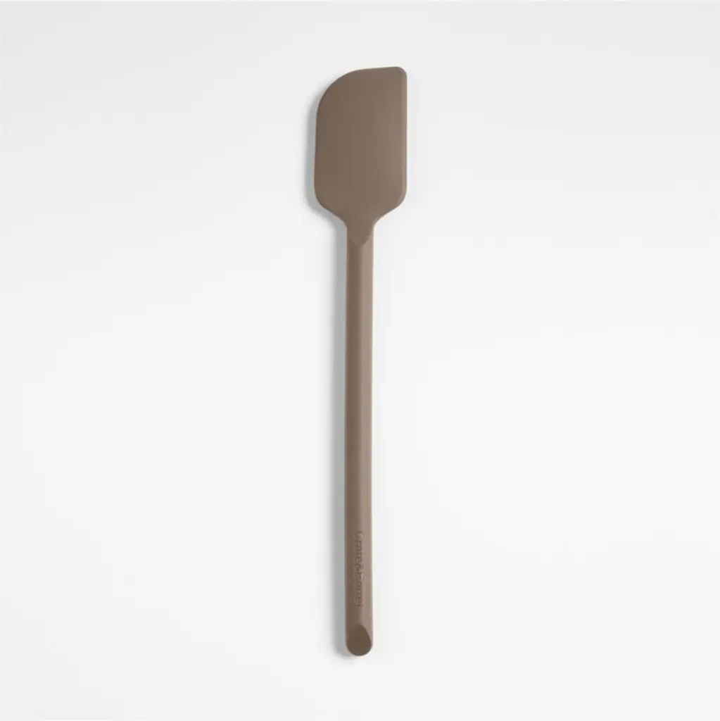 Stir, scoop and serve with our signature white silicone and wood spoon. Constructed with a nylon core for strength, the silicone head ably stirs the thickest sauces, doughs and battersor folds the most delicate meringues. Its flexible, tapered edges scrape the bowl, blender or pan perfectly clean, and soft-touch silicone won't damage non-stick cookware and resists stains, scratches and heat up to 600 degrees. Natural beechwood shapes a cylindrical handle for a sturdy grip and a warm, classic look. We love the way the refined beveled edge finishes the elongated handle with a dynamic detail. Combine the white spoon with the other exquisitely proportioned utensils in our exclusive Crate & Barrel collection for a well-outfitted workspace that's up to any cooking challenge.By choosing FSC ®-certified utensils, you are supporting responsible management of the world's forests.View all "The Kitchen by Crate" collection