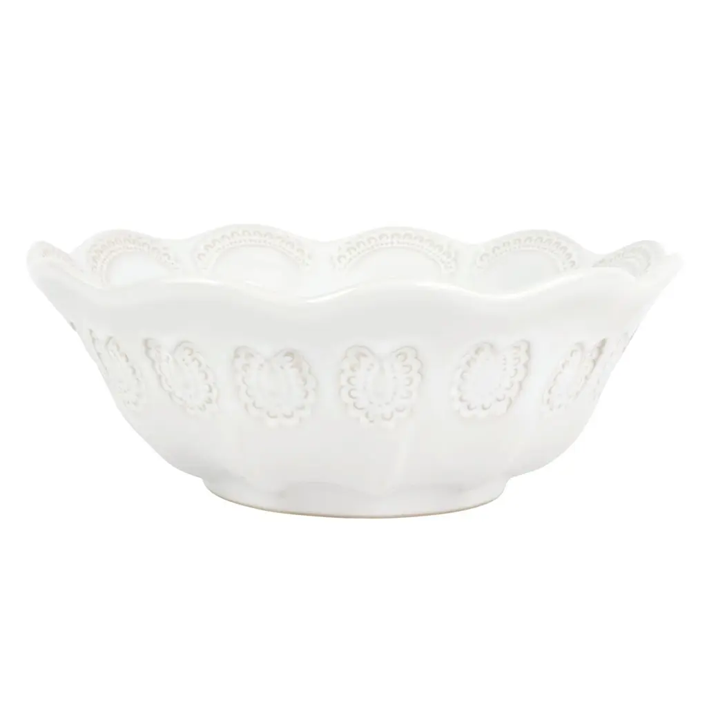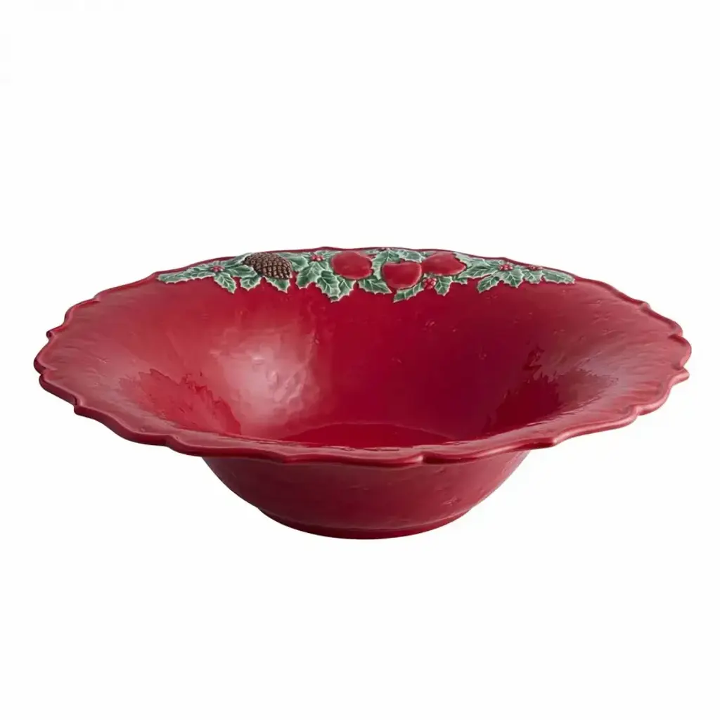 A positively precious way to present your favorite snacks and sides, our serving bowl is all tied up with a dimensional, scalloped red-bow rim. Made of ceramic with a cream ground, it's a delightful gift for anyone who loves classic Christmas and coquette aesthetics. This holiday-ready dish is painted by hand, creating subtle, special variations that ensure no two pieces are exactly alike.