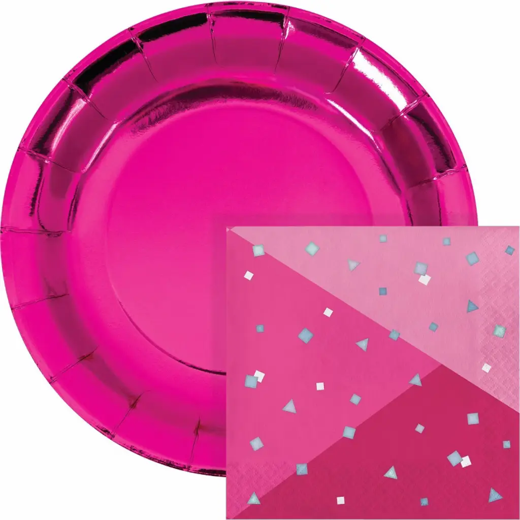 Creative Converting Hot Pink Foil 21st Birthday Plates And Napkins Set 16ct