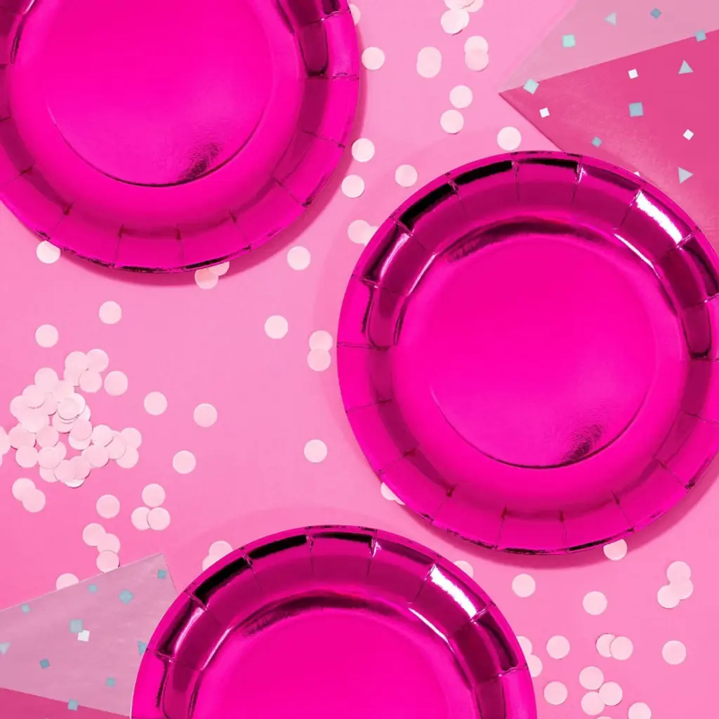 This Hot Pink Foil Birthday Plates and Napkins Set is perfect for hosting a stylish and glitzy birthday party! This kit serves 16 guests and comes with 9" dinner plates and 6.5" dinner napkins so you can dish out delicious food in style. The hot pink foil plates will easily fit slices of cake, cookies, pie, and more. This kit is a great way to bring a bring pink party to life and celebrate any age. Hosting a trendy celebration has never been easier with this complete set!