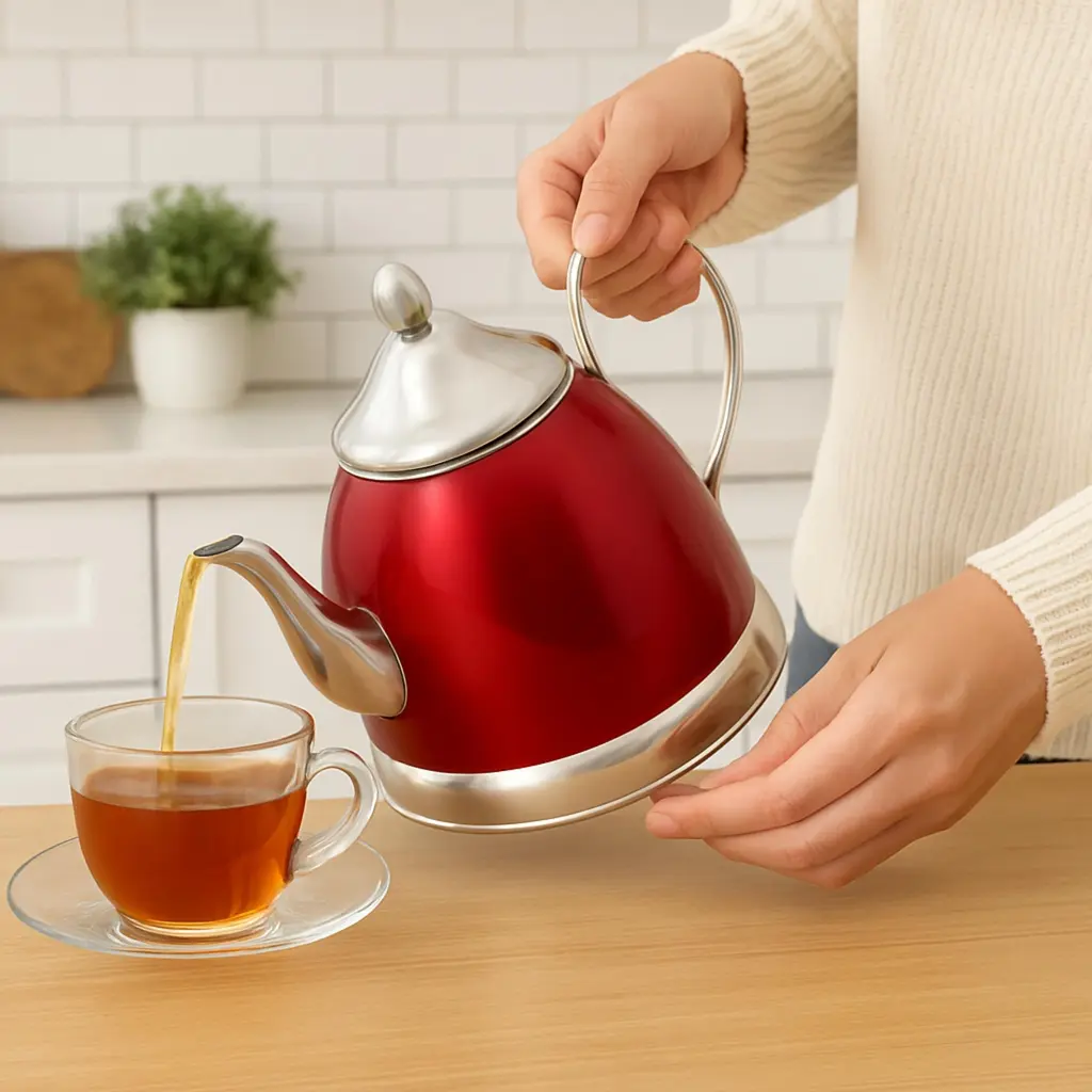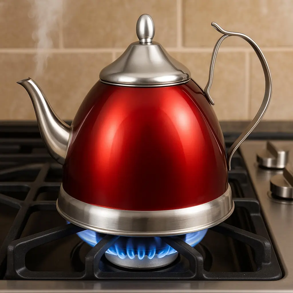 Upgrade Your Kitchen with an Elegant, Food-Grade Stainless Steel Tea Kettle! Made with 100% food-grade stainless steel, the Nobili-Tea 2.0 Qt Tea Kettle ensures a safe, durable, and stylish way to boil water. Unlike plastic kettles that may release harmful chemicals, this stainless steel kettle offers a healthier alternative for making tea, coffee, or hot beverages. Its sandwich bottom (stainless steel-aluminum-stainless steel) is designed for fast and even heat distribution, reducing boiling time and saving energy. The stainless steel handle provides a firm grip and remains heat-resistant, offering superior durability compared to common plastic handles. With its sleek and sophisticated design, this kettle is not just a kitchen essential but also an eye-catching piece that complements any modern kitchen. It is compatible with all stovetops, including gas, electric, induction, ceramic, and halogen cooktops, ensuring maximum versatility.Whether you’re a tea lover, a coffee enthusiast, or simply looking for a high-quality, long-lasting tea kettle, the Nobili-Tea 2.0 Qt Stainless Steel Tea Kettle is the perfect choice for your home!