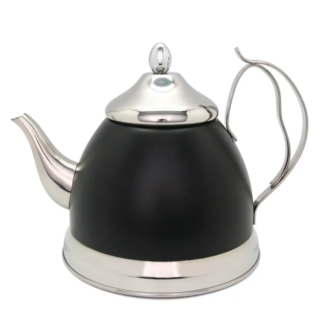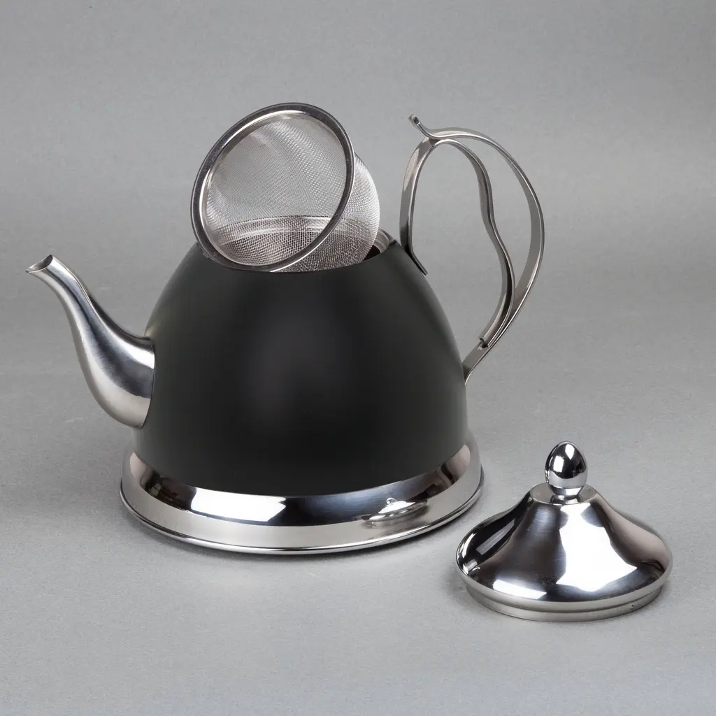 Creative Home Nobili-Tea 2.0 Quart Stainless Steel Tea Kettle Tea Pot With Removable Infuser Basket, Opaque Black Color - Black