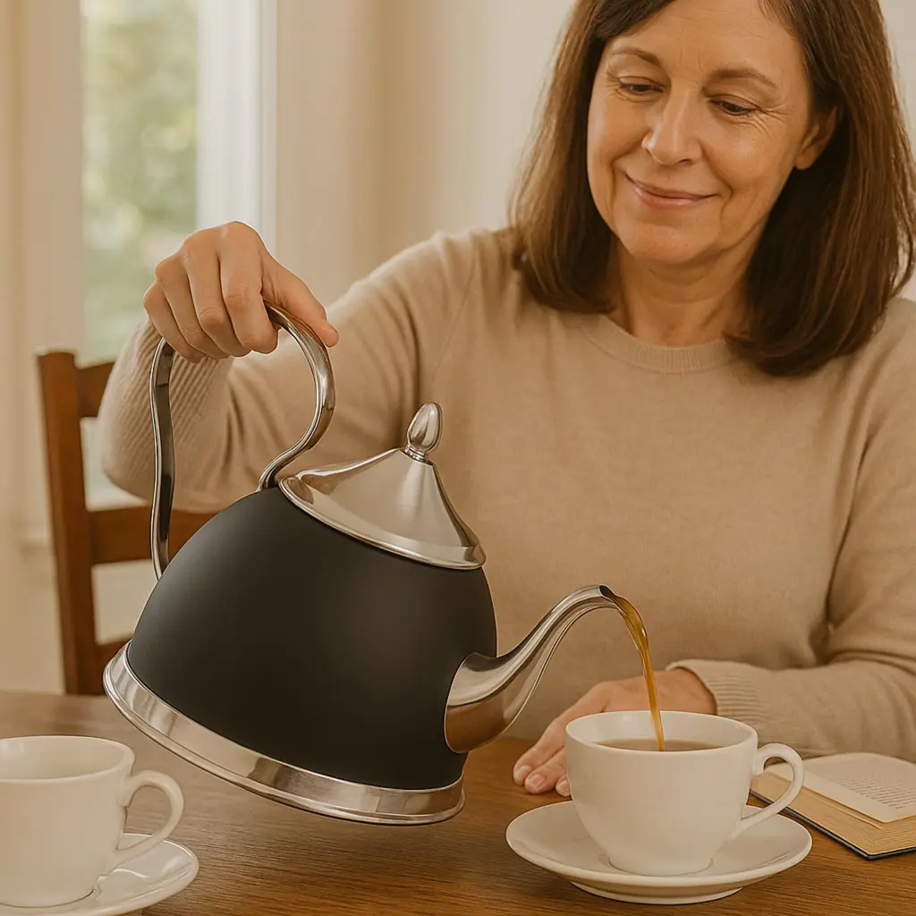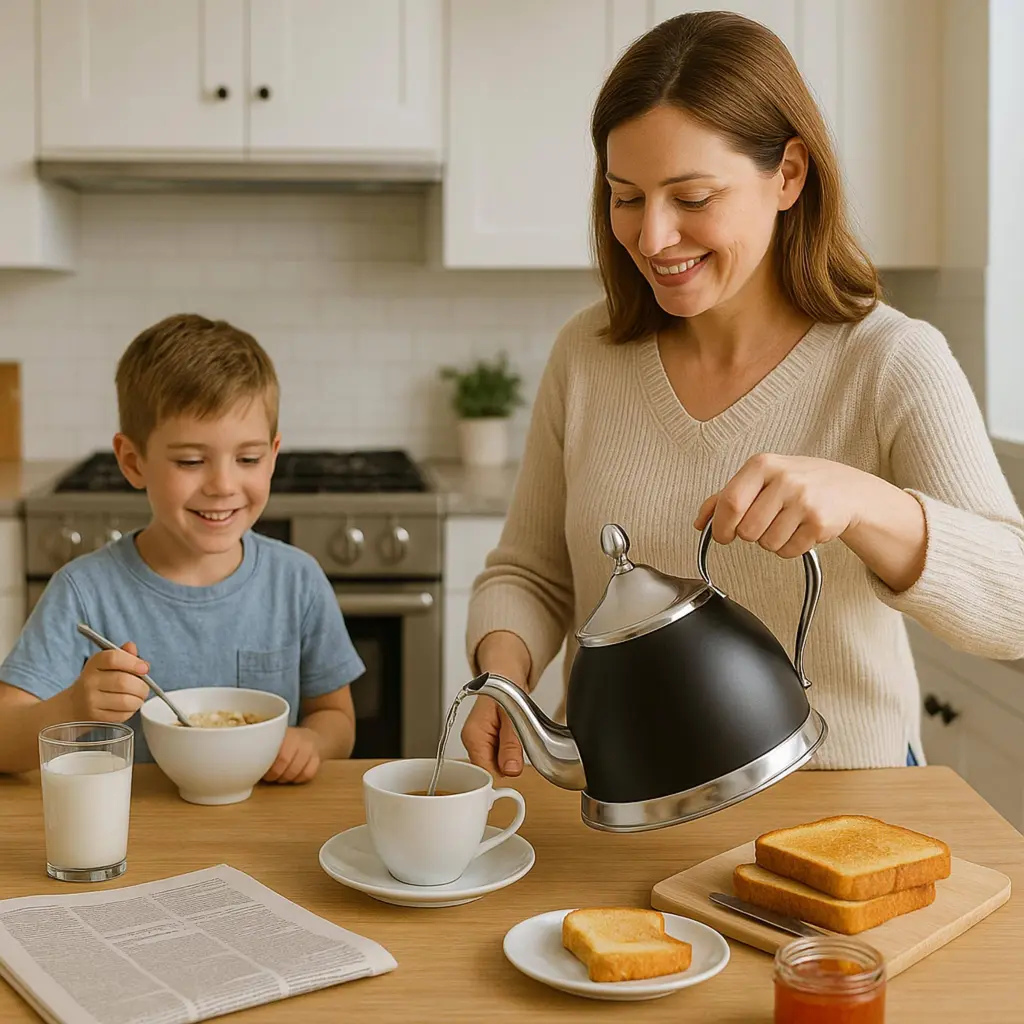 Upgrade Your Kitchen with an Elegant, Food-Grade Stainless Steel Tea Kettle! Made with 100% food-grade stainless steel, the Nobili-Tea 2.0 Qt Tea Kettle ensures a safe, durable, and stylish way to boil water. Unlike plastic kettles that may release harmful chemicals, this stainless steel kettle offers a healthier alternative for making tea, coffee, or hot beverages. Its sandwich bottom (stainless steel-aluminum-stainless steel) is designed for fast and even heat distribution, reducing boiling time and saving energy. The stainless steel handle provides a firm grip and remains heat-resistant, offering superior durability compared to common plastic handles. With its sleek and sophisticated design, this kettle is not just a kitchen essential but also an eye-catching piece that complements any modern kitchen. It is compatible with all stovetops, including gas, electric, induction, ceramic, and halogen cooktops, ensuring maximum versatility.Whether you’re a tea lover, a coffee enthusiast, or simply looking for a high-quality, long-lasting tea kettle, the Nobili-Tea 2.0 Qt Stainless Steel Tea Kettle is the perfect choice for your home!