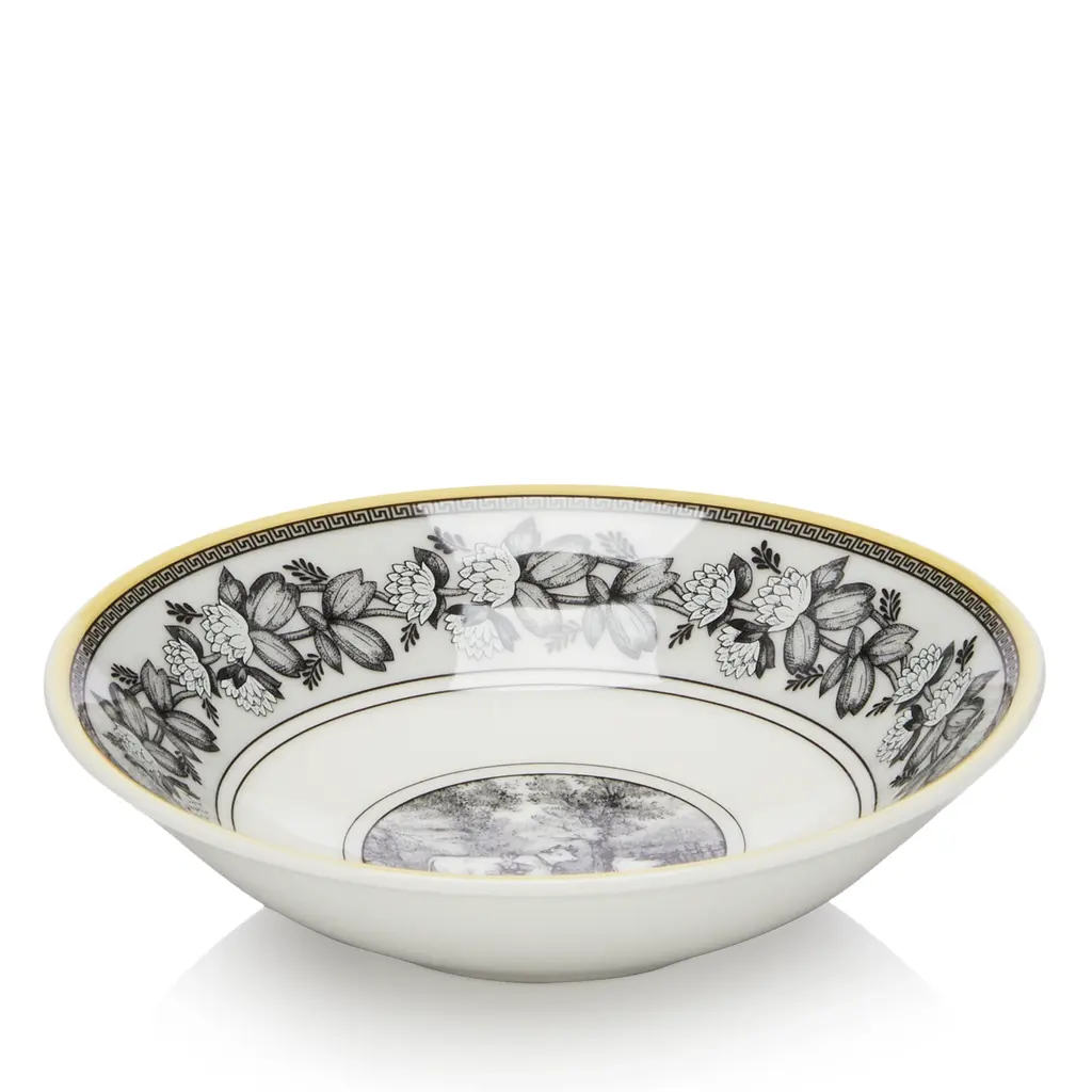 An Alberto Pinto design for Raynaud, each piece in the Cristobal dinnerware set is handmade in France from Limoges porcelain. These coral pattern dishes add style and grace to any table. Five-piece place setting includes dinner plate with wide band/plain center, salad plate with coral center, bread/butter plate, tea cup, and saucer. Raynaud was established in 1849 and is the only survivor of 11 porcelain factories existing in Limoges, France. After years of research, Raynaud discovered techniques to create infinite combinations of fade-resistant decorations that is still used by porcelain makers. Boasting a client list of numerous presidents to Princess Diana, Raynaud has been the synonym of quality, known and recognized on every continent.