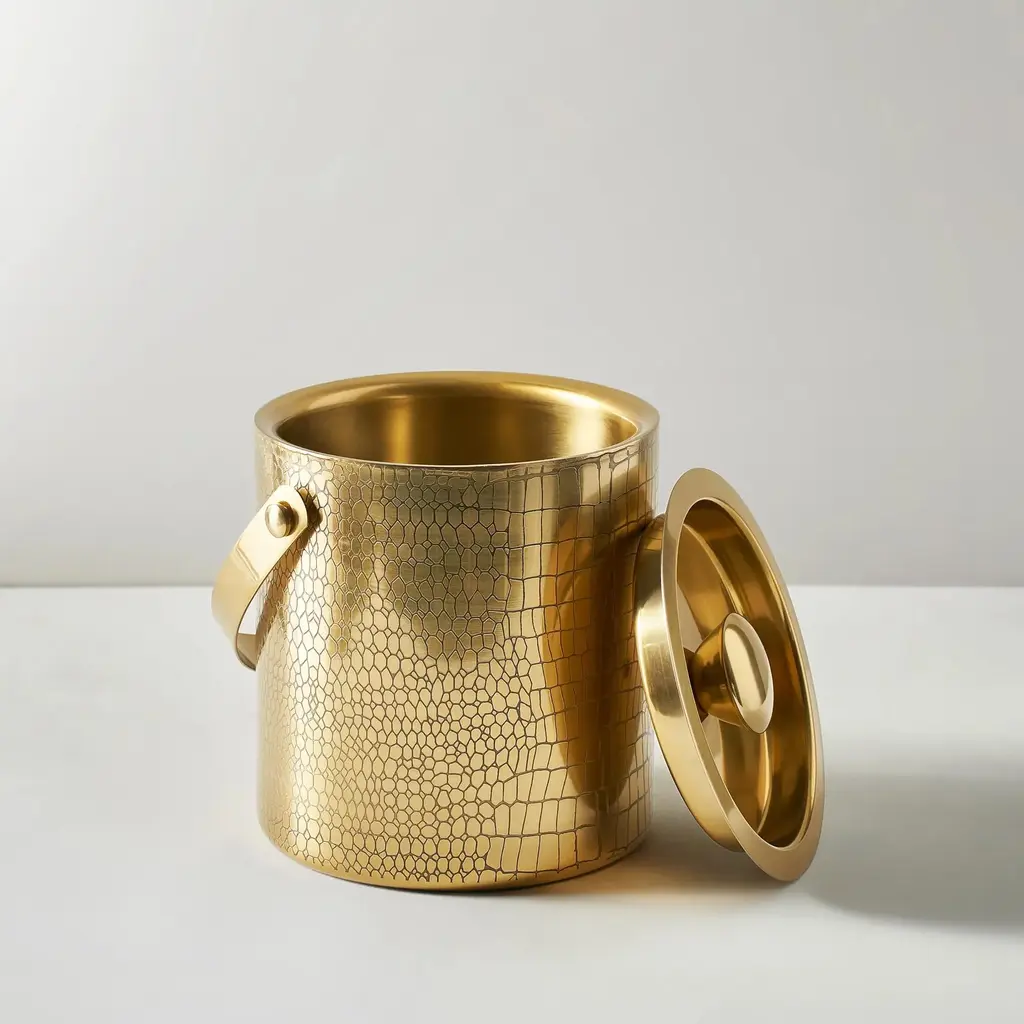 Not-your-average ice bucket, this chic croc-embossed style in a gleaming gold finish doubles as décor, instantly elevating your bar cart.