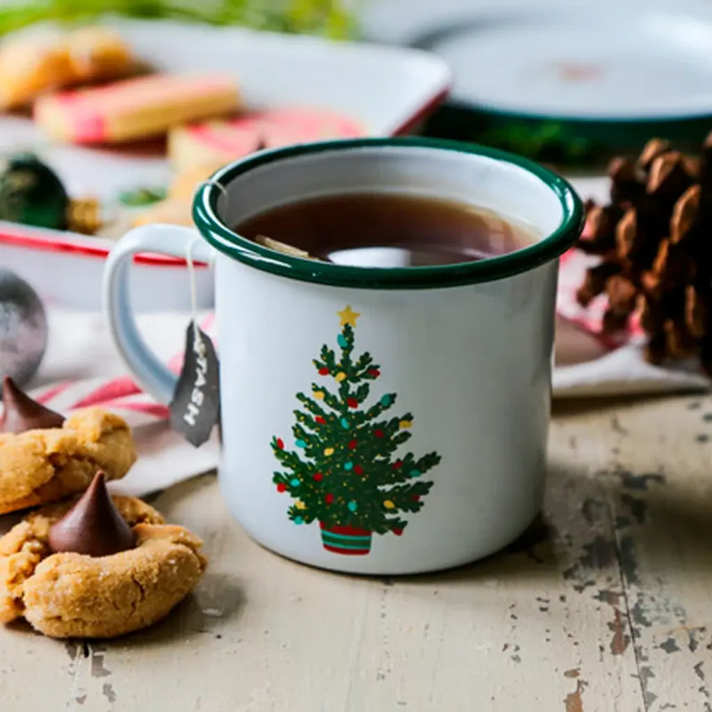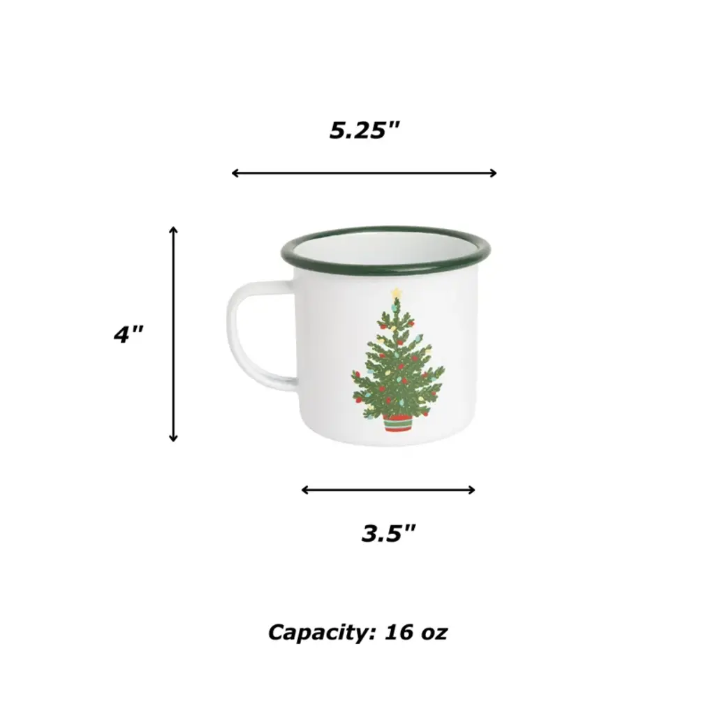 Crow Canyon Enamelware Helmsie X Cch Christmas Tree 16 Oz Large Mugs, Green Rim (Set Of 4)