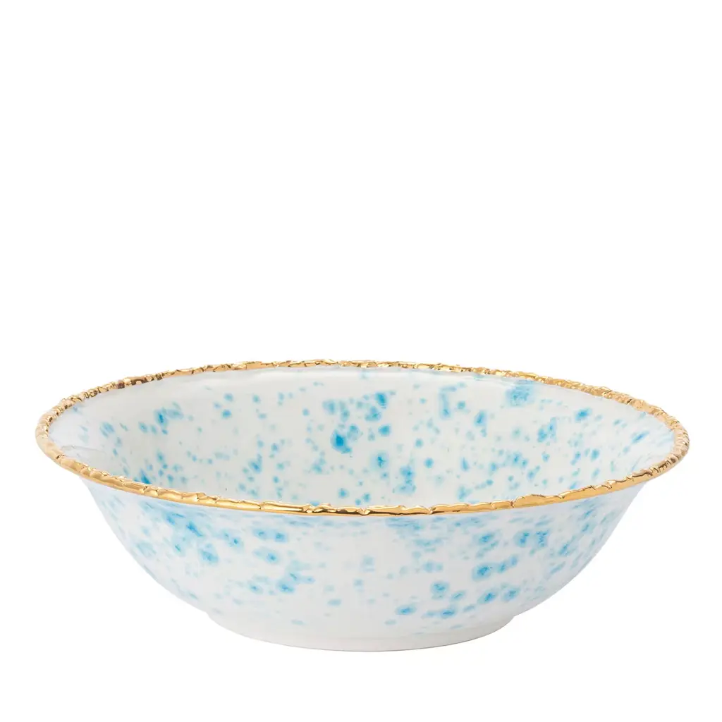Luxurious and cheerful, the Florida collection was launched in 2023. It is inspired by the American state famous for its strong character and colorful heritage. Each line is characterized by a color. They are inspired by some of the most famous places in Florida, recalling its beaches and its sunsets, stretching between the Gulf of Mexico and the Atlantic Ocean.Palm Beach pink, Miami orange, Amelia green, Naples yellow, Crystal tourqoise, Islamorada lavender.Each plate is decorated with a lightly colored center interspersed with multicolor dots. The rim is richly decorated golden leafs. The charger, tea and coffee cups have are decorated with a golden net- The dessert plates and teapots have a distinct design characterized by golden rays crisscrossing their surface.