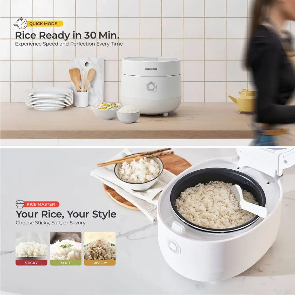 Cuckoo 3-cup Micom Rice Cooker And Warmer White: 9 Settings, Automatic Keep Warm, Timer, Dishwasher-safe Parts