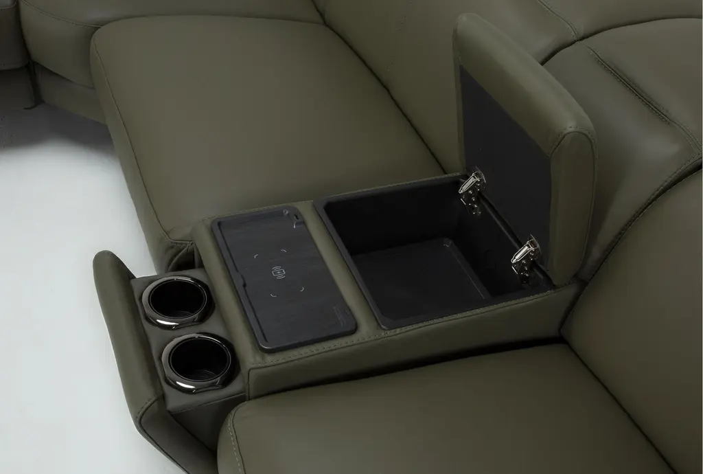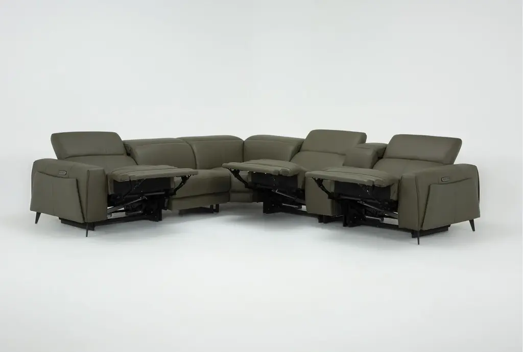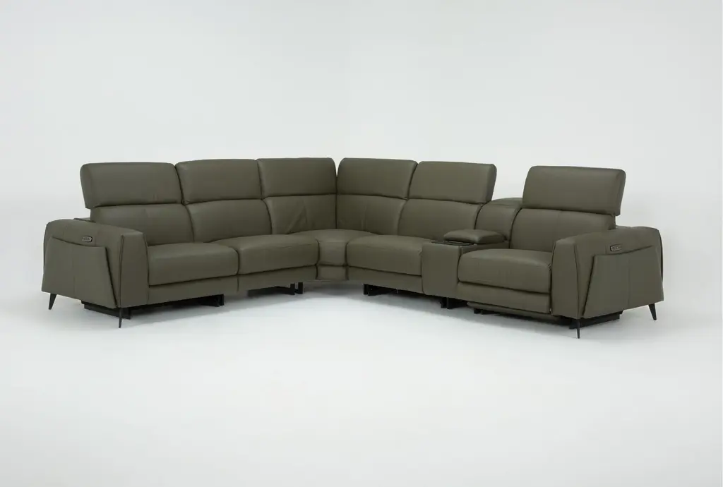 Cullen Olive Green Leather 127" 6 Piece Power Zero Gravity Reclining Modular Sectional With Console Power Headrest Storage Hidden Cupholders Wireless Charging & Usb