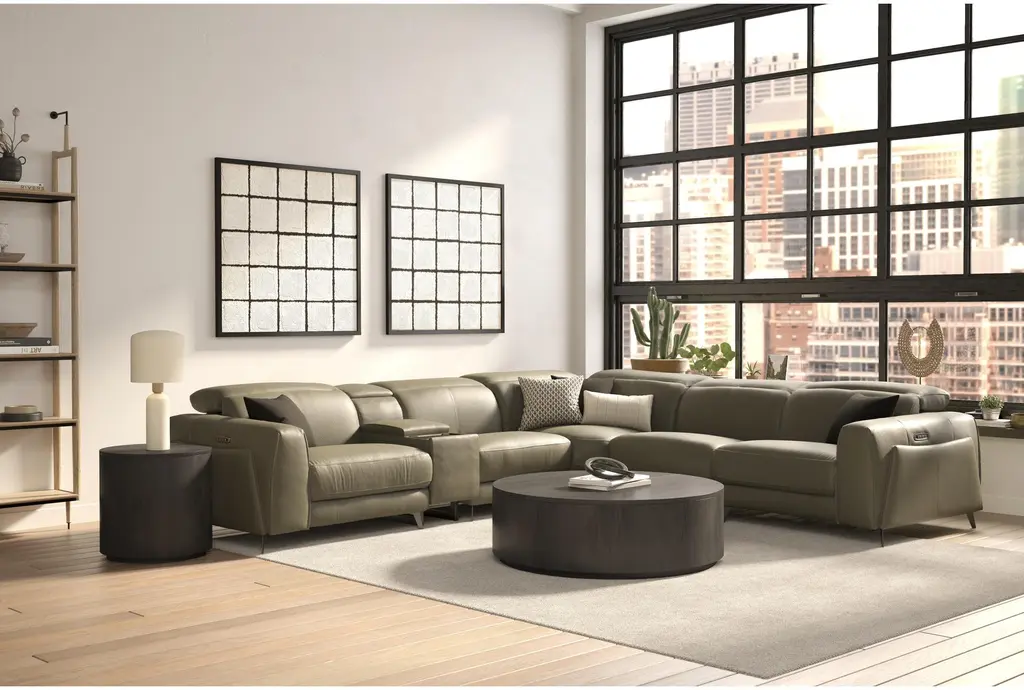 With a list of features that will impress the most discerning lounger, our Cullen leather zero gravity power reclining modular sectional delivers the highest levels of luxury, functionality and comfort. Top grain leather seating offers beauty and durability, while modular design lends flexibility. Power motion and power headrests adjust to various positions, including Zero Gravity for improved circulation and reduced back pain, among other health benefits. In addition to built-in USB charging, the arms boast hidden storage and cupholders that bring ease and convenience. A storage console unit boasts wireless charging and pop-out cupholders.