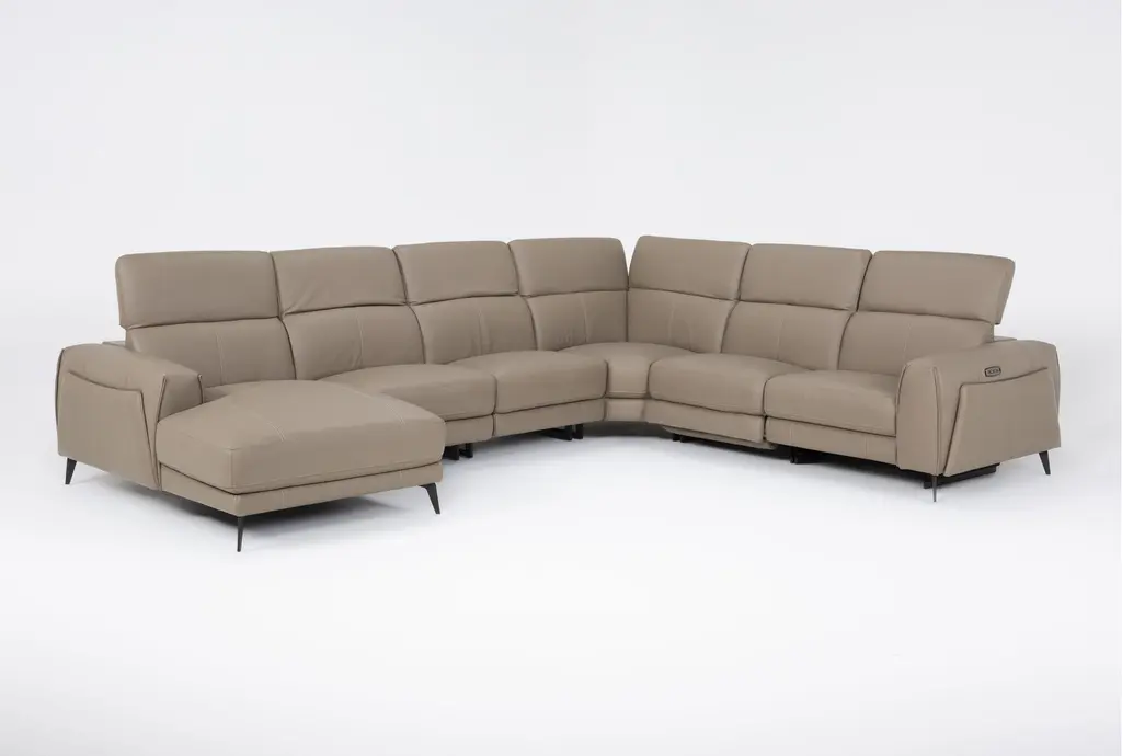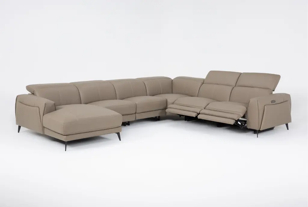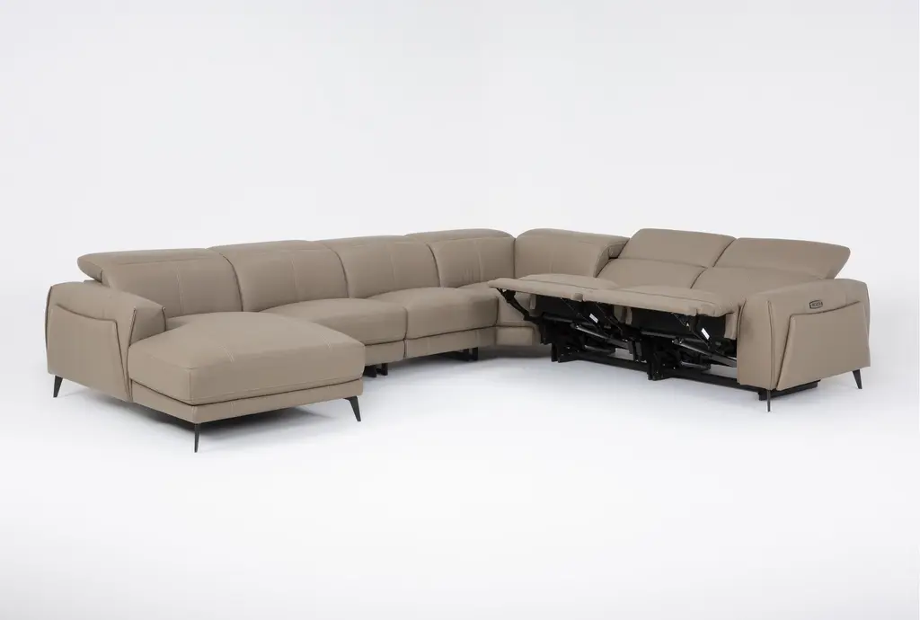 Cullen Taupe Beige Leather 143" 6 Piece Power Zero Gravity Reclining Modular Sectional With 2 Armless Chairs Left Arm Facing Chaise Power Headrest Storage Hidden Cupholders & Usb