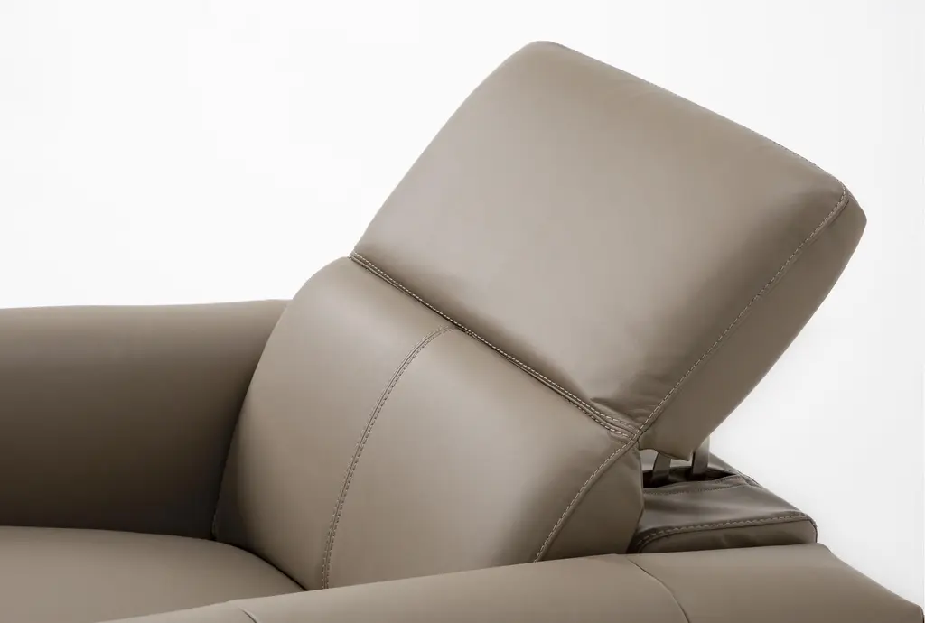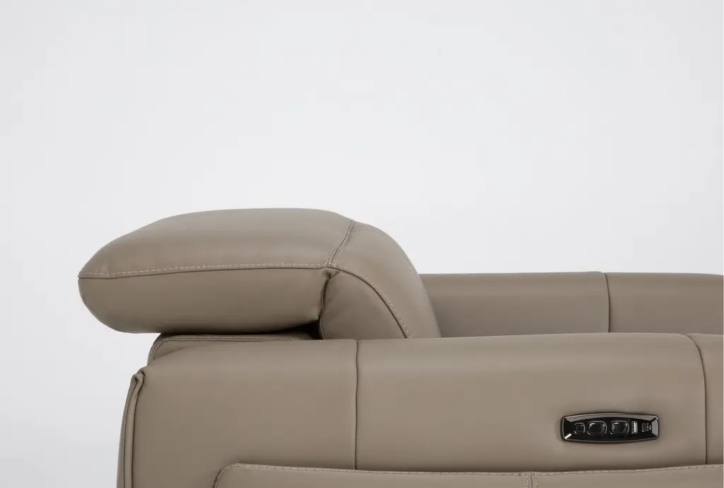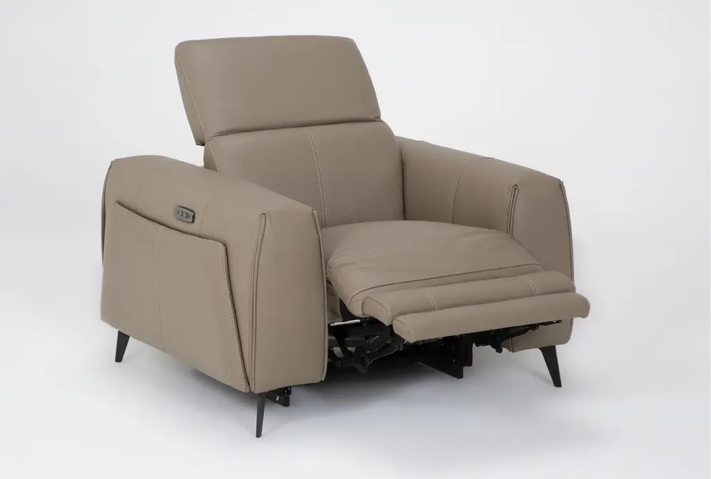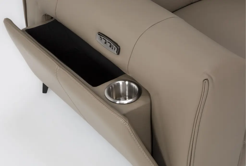 Experience the ultimate relaxation with the Cullen Taupe Beige Leather Power Zero Gravity Oversized Recliner. Designed for contemporary living rooms, this recliner features a power headrest for personalized comfort, ample storage, and convenient cupholders to keep your beverages within reach. The luxurious top grain leather upholstery provides a soft, durable surface that enhances your lounging experience.