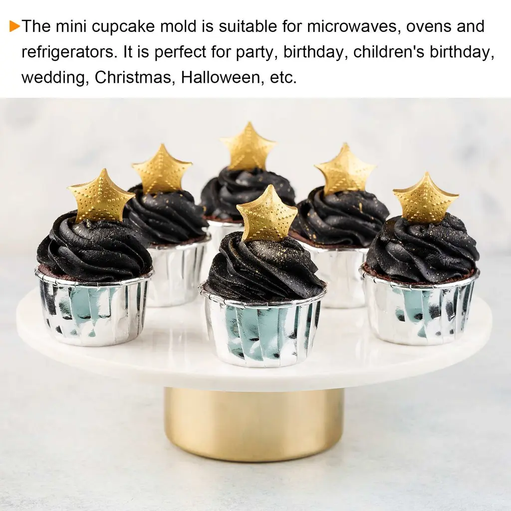 1. These cupcake cups are made of quality aluminum foil that makes these strong and sturdy. Put them into the oven and bake them directly. No Baking tray is needed. Safe for families.2. Baking cups can be a one -time and reusable cup, and can be placed in different types of desserts, such as caramel pudding miniature cheese cakes, etc., can withstand the temperature of up to 250 ° C, which will not be warped or deformed.3. The mini cupcake molds are suitable for microwaves, ovens and refrigerators. It is perfect for party, birthday, children's birthday, wedding, Christmas, Halloween, etc.4. You can bake the paper molds in the oven directly. No cupcake tray required. Saves time and energy.
