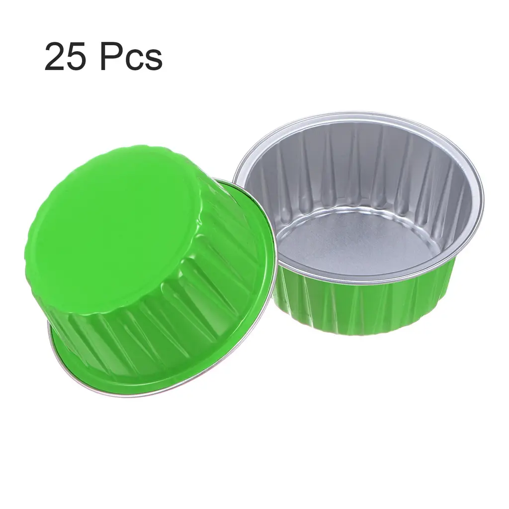 Cupcake Cups, 25pcs 66x36x85mm Aluminum Foil Standard Cupcake Liners - Grass Green/silver