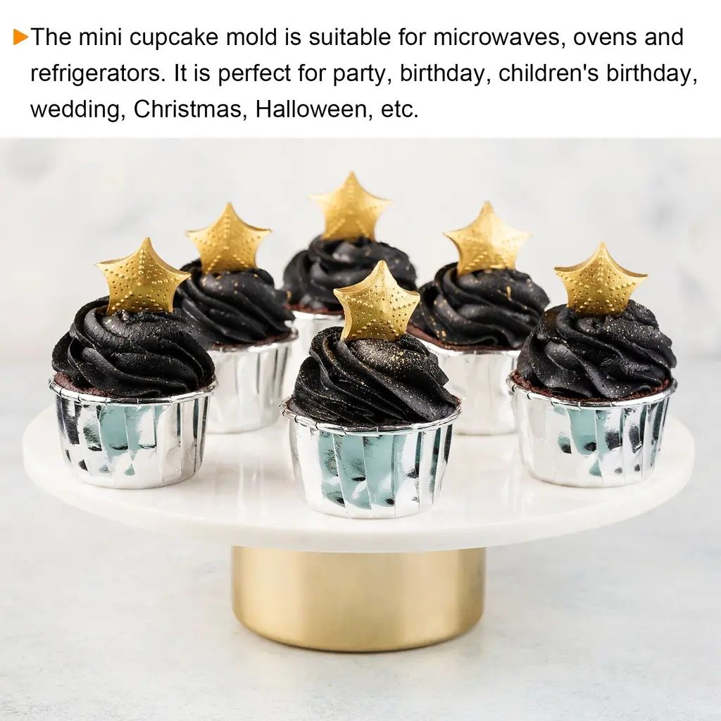 Cupcake Cups, 50pcs 66x36x85mm Aluminum Foil Standard Cupcake Liners - Black/silver