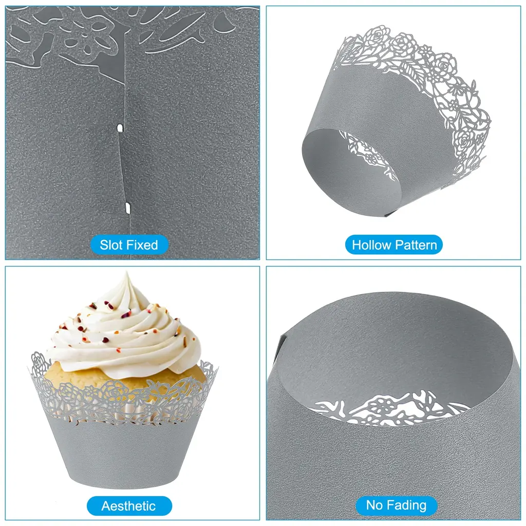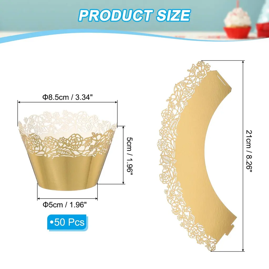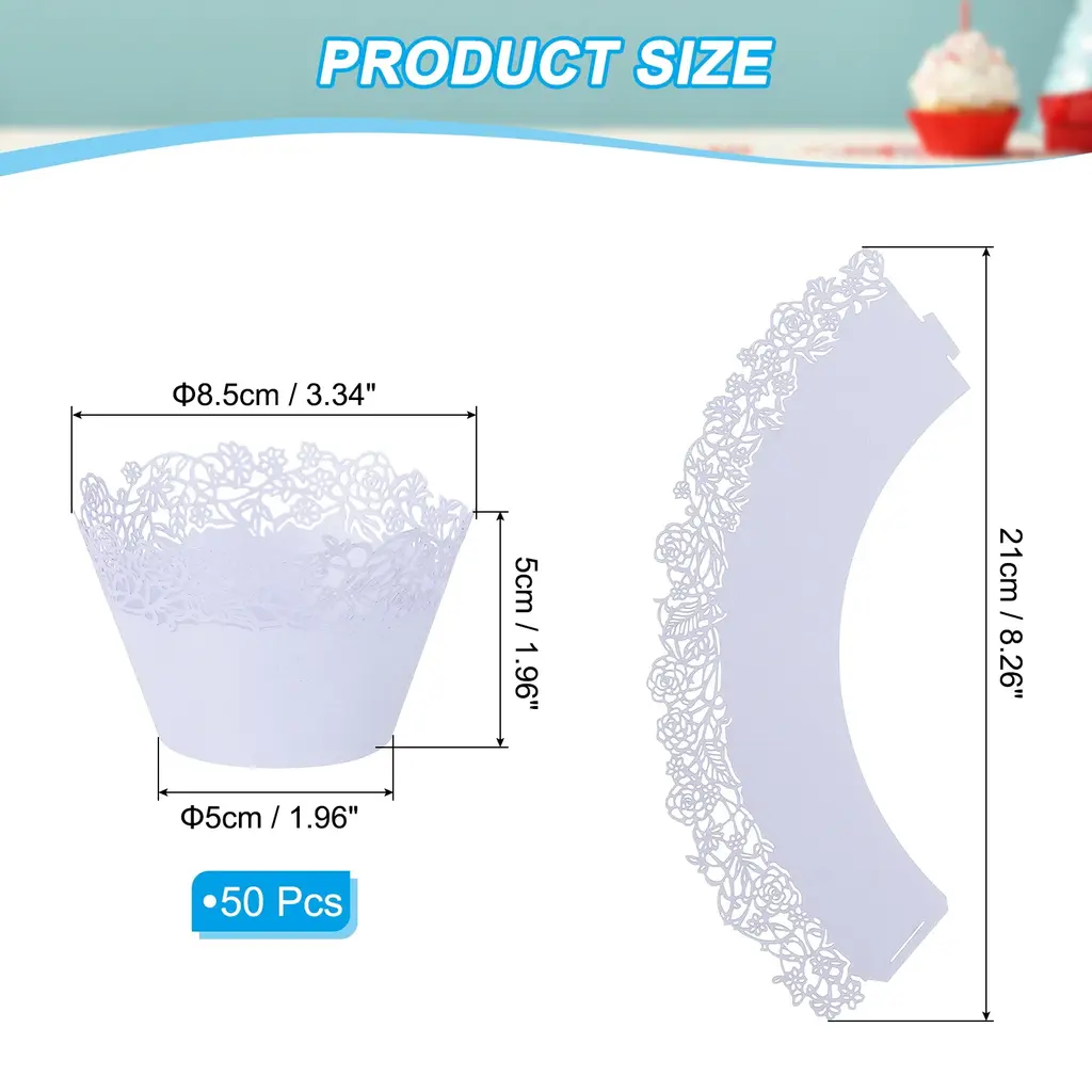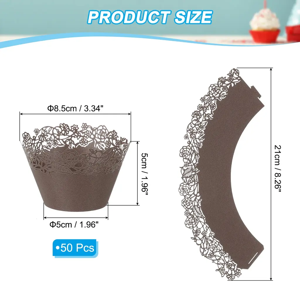These paper cupcake wrappers are suitable for decorating and protecting cupcakes at events, bakeries, or cafes.Specification:Color: GreyMaterial: PaperExpand Size:21 cm x 8.5 cm x 5 cm / 8.26 x 3.34 x 1.96 inch(L*W*H)Packing List: 50pcs x Cupcake WrappersAdvantageThese cupcake wrappers are in rich color, great for decorating your cupcakes and keeping your cupcakes tower or looking great for hours. Easy to use, make a finished look of your cupcakes in seconds on your anniversary, birthday, wedding, and party.InstructionThere is a slot for the standard cupcakes. Slide the tab into the slot for assembling the wrapper. Bottomless design, for covering the baking liners on cupcakes or baked goods, drink sleeves, and cupcake collars.NOTE:Not resistant to baking, please do not put it into the oven.