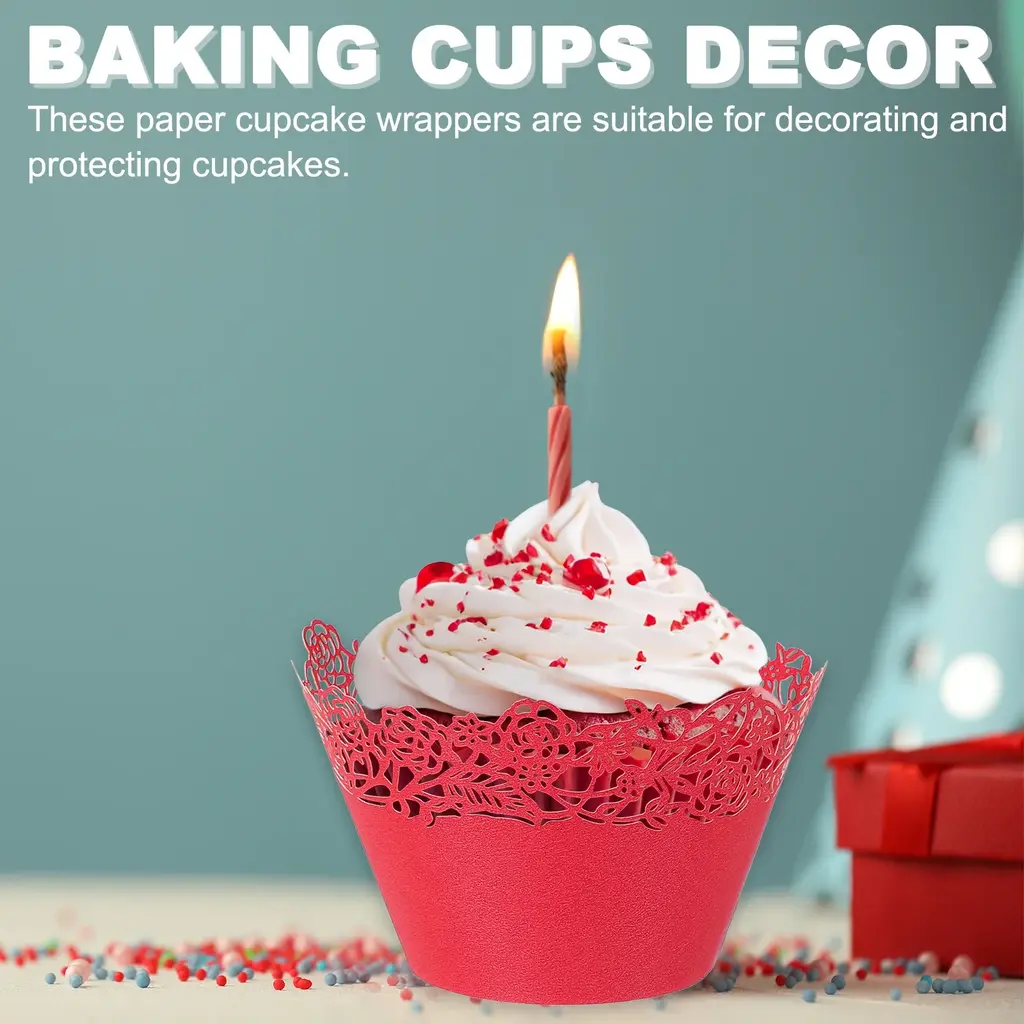 Cupcake Wrappers Paper, 50 Pack Baking Cups Standard Rose Decor - Light Purple