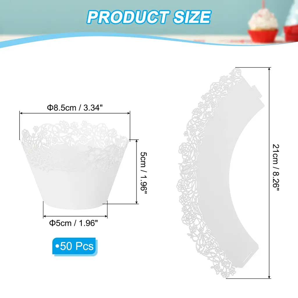 These paper cupcake wrappers are suitable for decorating and protecting cupcakes at events, bakeries, or cafes.Specification:Color: GreyMaterial: PaperExpand Size:21 cm x 8.5 cm x 5 cm / 8.26 x 3.34 x 1.96 inch(L*W*H)Packing List: 50pcs x Cupcake WrappersAdvantageThese cupcake wrappers are in rich color, great for decorating your cupcakes and keeping your cupcakes tower or looking great for hours. Easy to use, make a finished look of your cupcakes in seconds on your anniversary, birthday, wedding, and party.InstructionThere is a slot for the standard cupcakes. Slide the tab into the slot for assembling the wrapper. Bottomless design, for covering the baking liners on cupcakes or baked goods, drink sleeves, and cupcake collars.NOTE:Not resistant to baking, please do not put it into the oven.