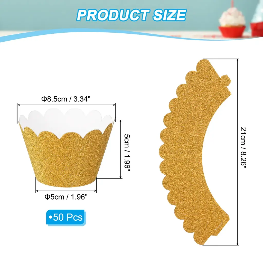 These paper cupcake wrappers are suitable for decorating and protecting cupcakes at events, bakeries, or cafes.Specification:Color: Light GoldMaterial: PaperExpand Size:21 cm x 8.5 cm x 5 cm / 8.26 x 3.34 x 1.96 inch(L*W*H)Packing List: 50pcs x Cupcake WrappersAdvantageThese cupcake wrappers are in rich color, great for decorating your cupcakes and keeping your cupcakes tower or looking great for hours. Easy to use, make a finished look of your cupcakes in seconds on your anniversary, birthday, wedding, and party.InstructionThere is a slot for the standard cupcakes. Slide the tab into the slot for assembling the wrapper. Bottomless design, for covering the baking liners on cupcakes or baked goods, drink sleeves, and cupcake collars.NOTE:Not resistant to baking, please do not put it into the oven.