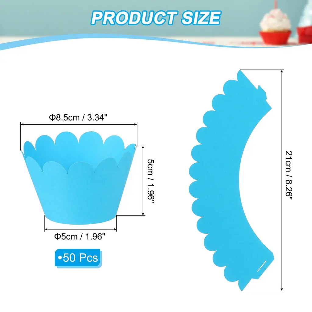 Cupcake Wrappers Paper, 50 Pack Baking Cups Standard Wave Decor - Blue