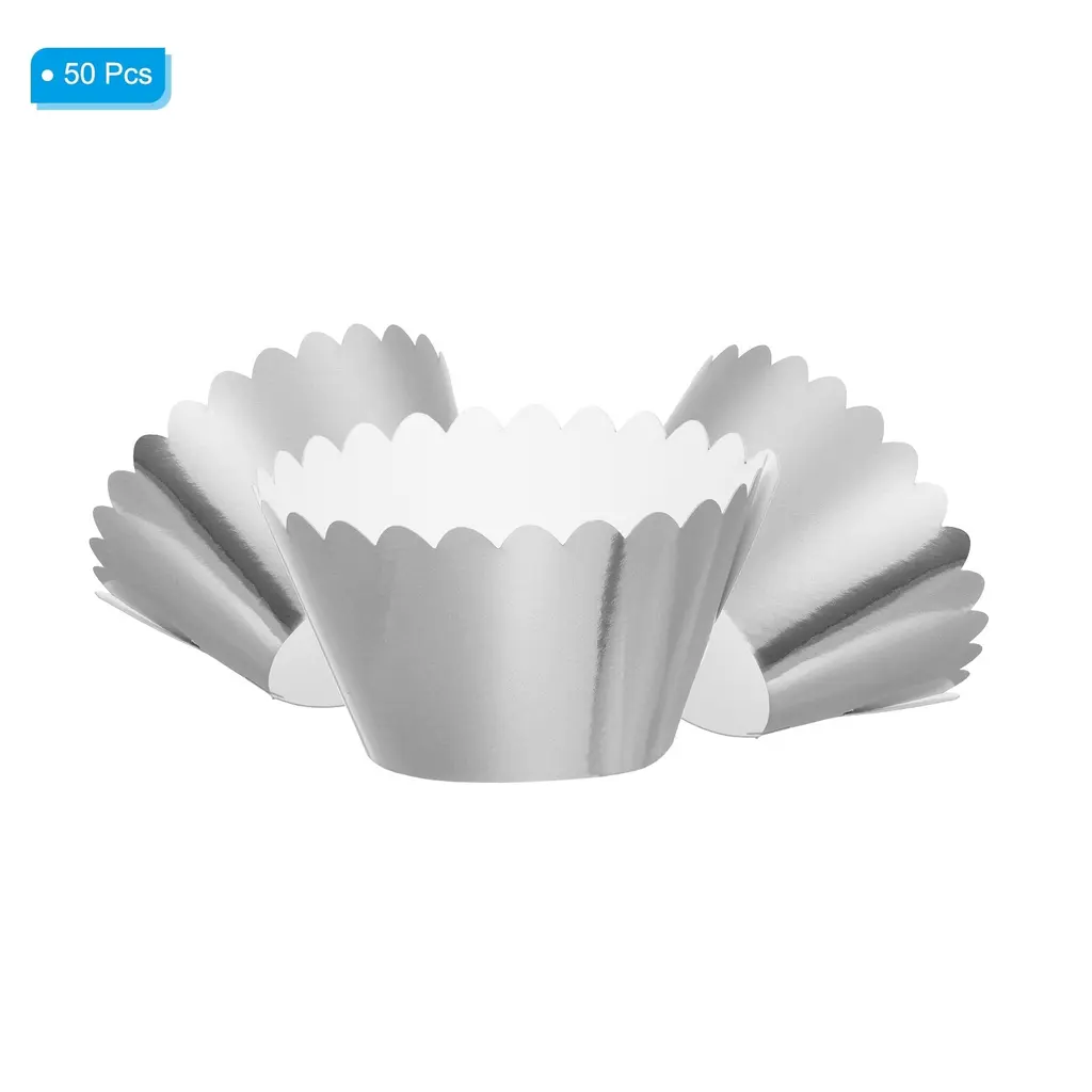 Cupcake Wrappers Paper, 50 Pack Baking Cups Wave Decoration - Silver Tone