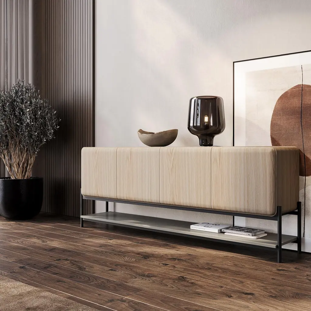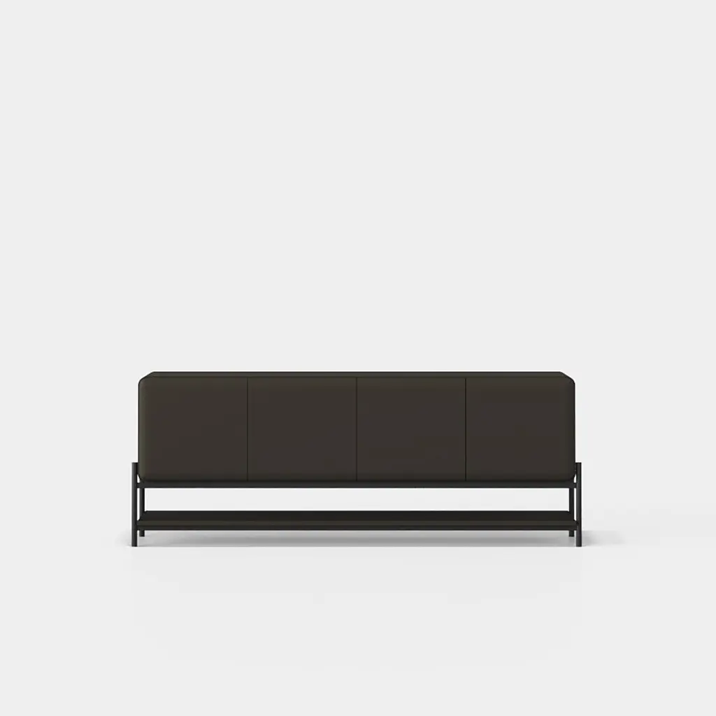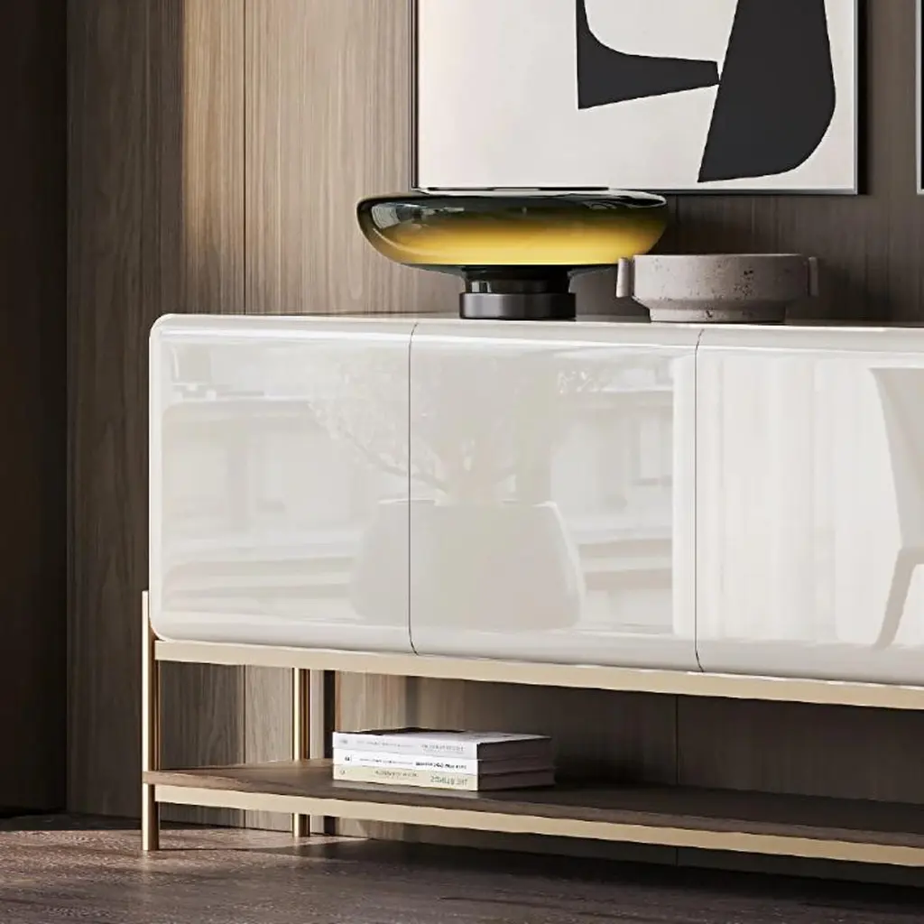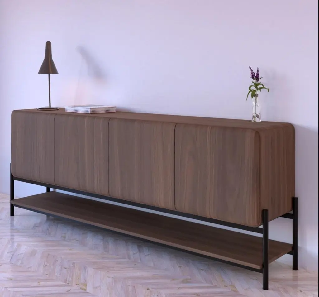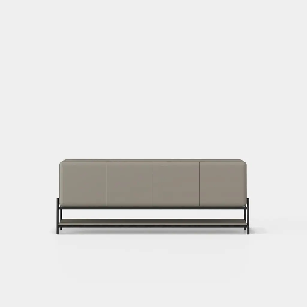 Smooth, curved, and distinctly contemporary, this capsule-shaped sideboard features a softly rounded silhouette that brings a sense of quiet sophistication to any interior. The body is finished in a warm matte lacquer, offering a velvety surface that feels as refined as it looks.Its minimal form is elevated on a slim, architectural base in Epóxi Grey, adding contrast and lightness to the overall composition. A full-length open shelf runs beneath the cabinet body, enhancing its functionality while maintaining a clean, uncluttered profile.With its seamless edges, softened corners, and balanced proportions, this piece evokes a calm, sculptural presence—ideal for refined spaces that value both form and function.Our pricing includes all costs for international shipping to the U.S., as well as duties and customs clearance fees. Please be aware that local delivery within the U.S. is not included. We offer white glove, front door, and warehouse delivery options. For shipments outside the U.S., kindly reach out to us for a detailed quote.