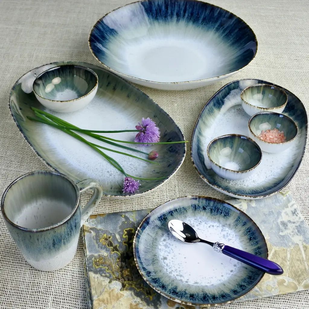 The Carmel Ceramica Cypress Grove Collection brings something special to the table with its dramatic reactive glazes in stunning blue and brown hues. As a result of the variegated coloring, each piece has a subtly unique finish, so no two pieces are exactly alike.