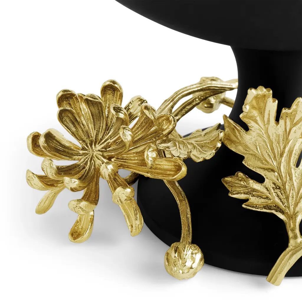 During the Victorian era, Dahlias were regarded as symbols of love and devotion. Michael Aram's Dahlia Collection captures this sense of romance by portraying the flower's interconnected petals in goldtone to emphasize their symmetry and spiraling pattern. In some pieces, Michael has chosen to contrast the radiant blooms against black granite and enameled stainless steel, evoking a mysterious sensuality.