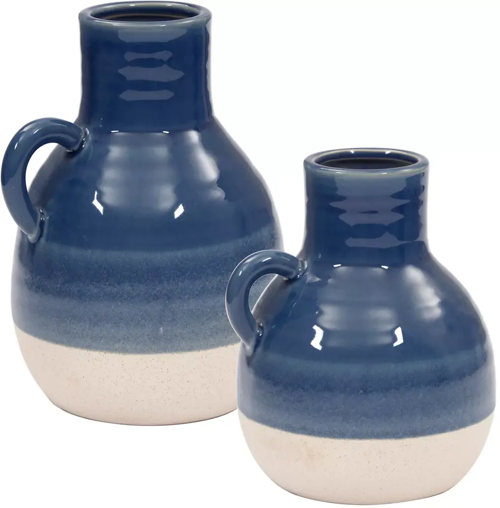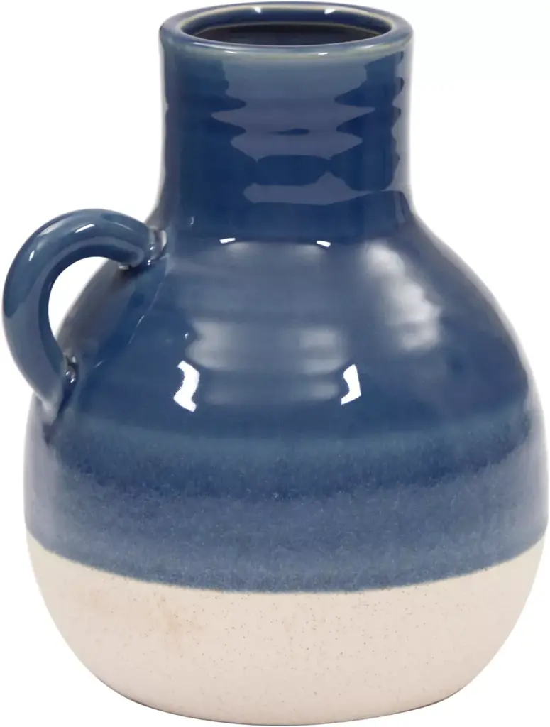 Our Dalary jug showcases shades of navy blue fading to a white base for a color combination that is timeless in style. This ceramic jug is the perfect shape for holding faux florals or greenery and features a charming handle. Two sizes are available including a 10-inch or 9-inch tall size. Please select your size before adding cart.