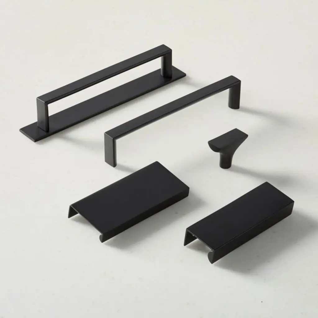 Barcelona-based Mermelada Estudio's cabinet handle and coordinating backplate sport sleek lines and subtle curved details, crafted of solid brass in a matte black finish that elevates any space. Learn about Mermelada Estudio on our blog. CB2 exclusive.