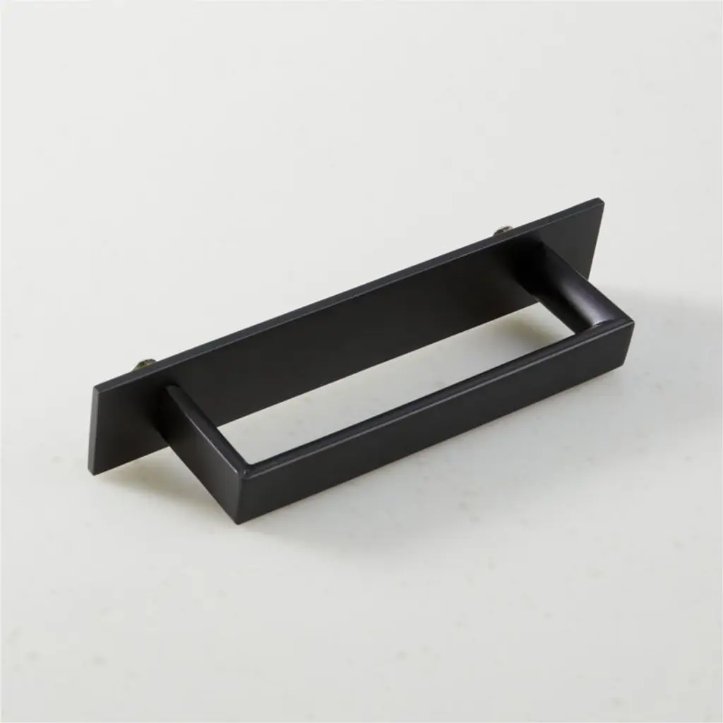 Barcelona-based Mermelada Estudio's cabinet handle and coordinating backplate sport sleek lines and subtle curved details, crafted of solid brass in a matte black finish that elevates any space. Learn about Mermelada Estudio on our blog. CB2 exclusive.