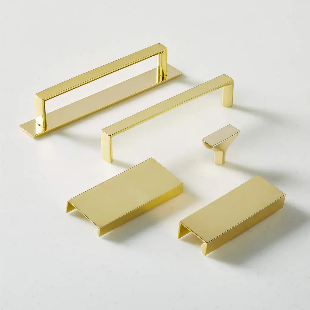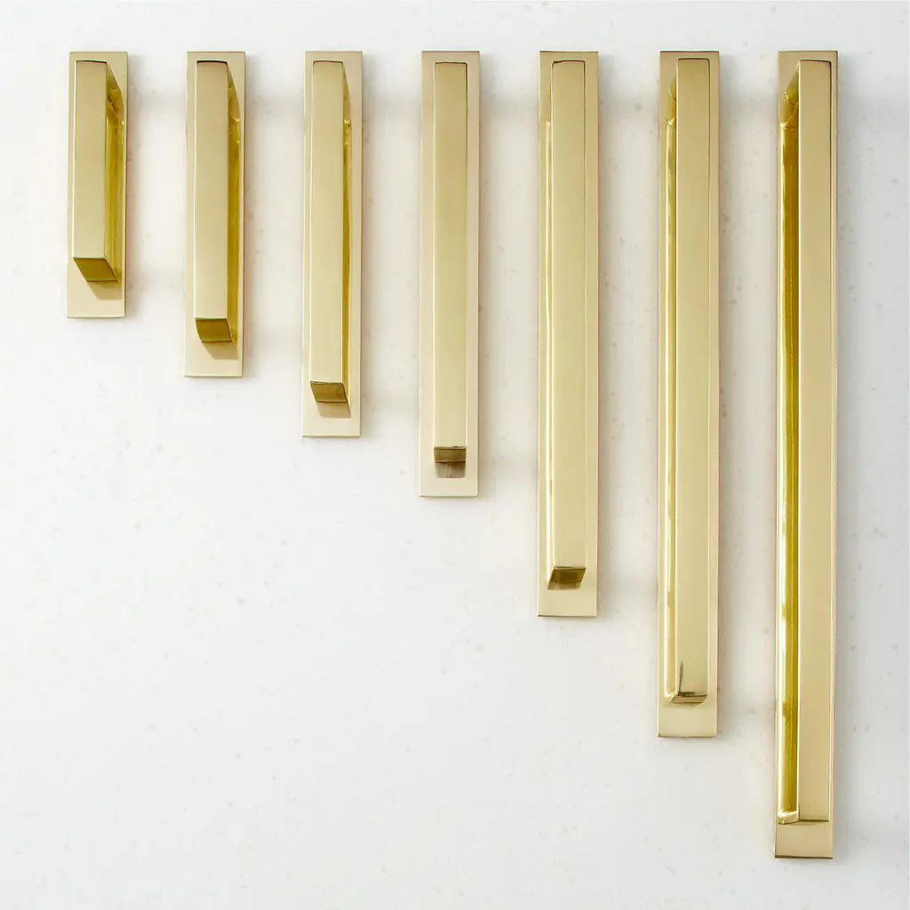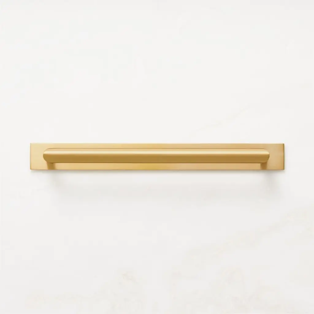 Barcelona-based Mermelada Estudio's cabinet handle and coordinating backplate sport sleek lines and subtle curved details, crafted of solid brass in a polished finish that elevates any space. Learn about Mermelada Estudio on our blog. CB2 exclusive.