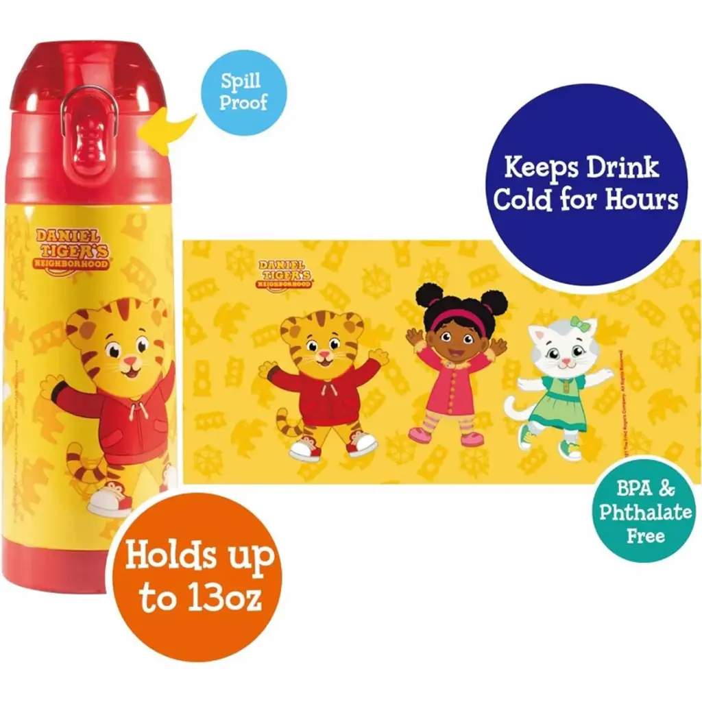 Daniel Tiger 13oz Insulated Water Bottle W Latching Lid- Spill Proof & Bpa-free, Keeps Drinks Colder, Fits In Lunch Boxes, Fun For School