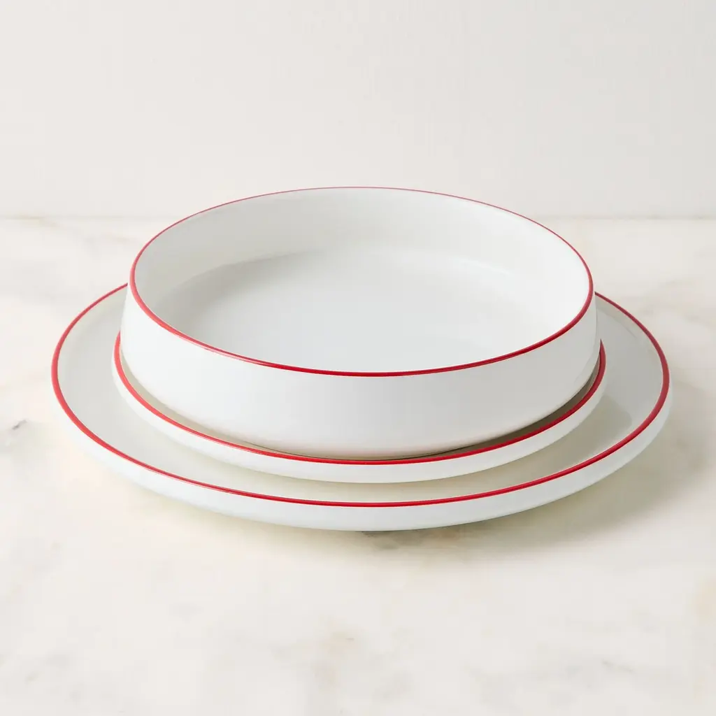 We’re all about dinnerware that’s modern, retro-inspired, and timeless all at once, and this dinnerware is exactly that. Named for the Danish word for “rim,” the Kant collection beautifully pairs sculpted forms with contrasting edges.Size:12-Piece Set includes four each of the below items. Dinner Plate 10" D x 1" H. Salad Plate 8" D x 0.75" H. Low Bowl 24 oz capacity, 7.25" D x 1.5" H.Made in:ChinaMade of:Porcelain.Care:Microwave and dishwasher safe.