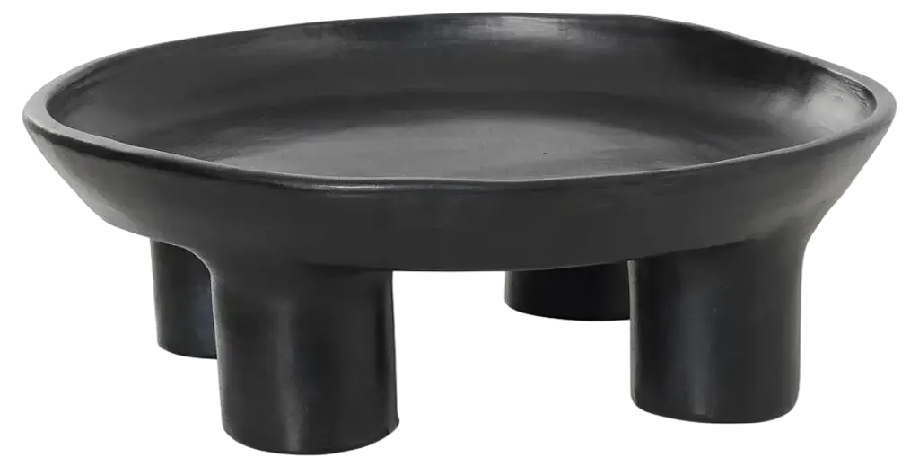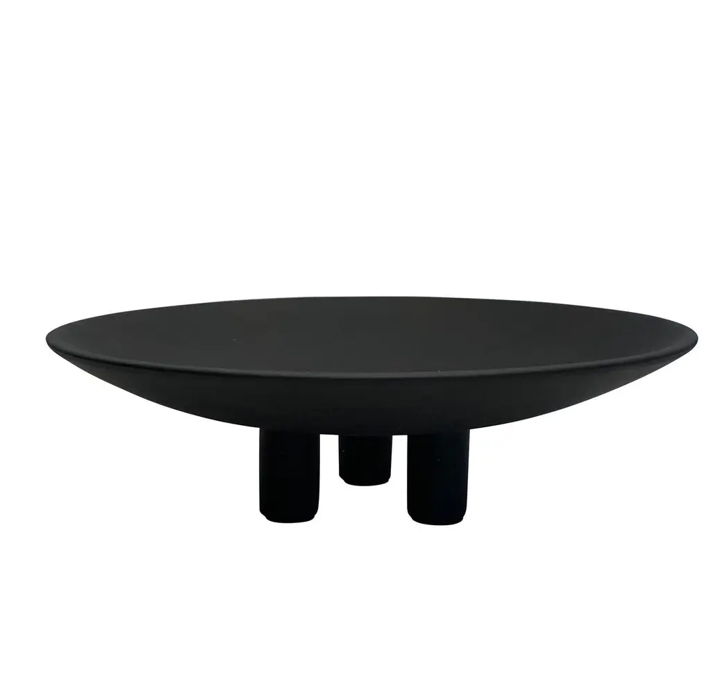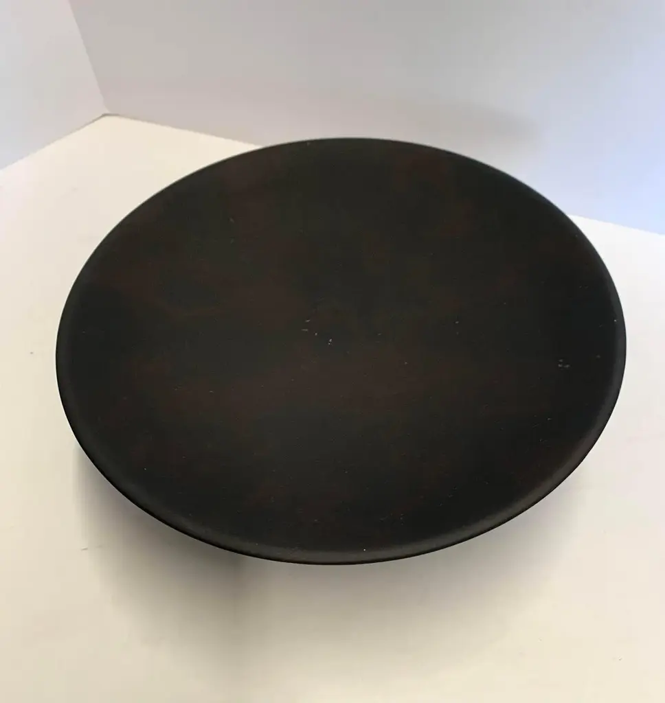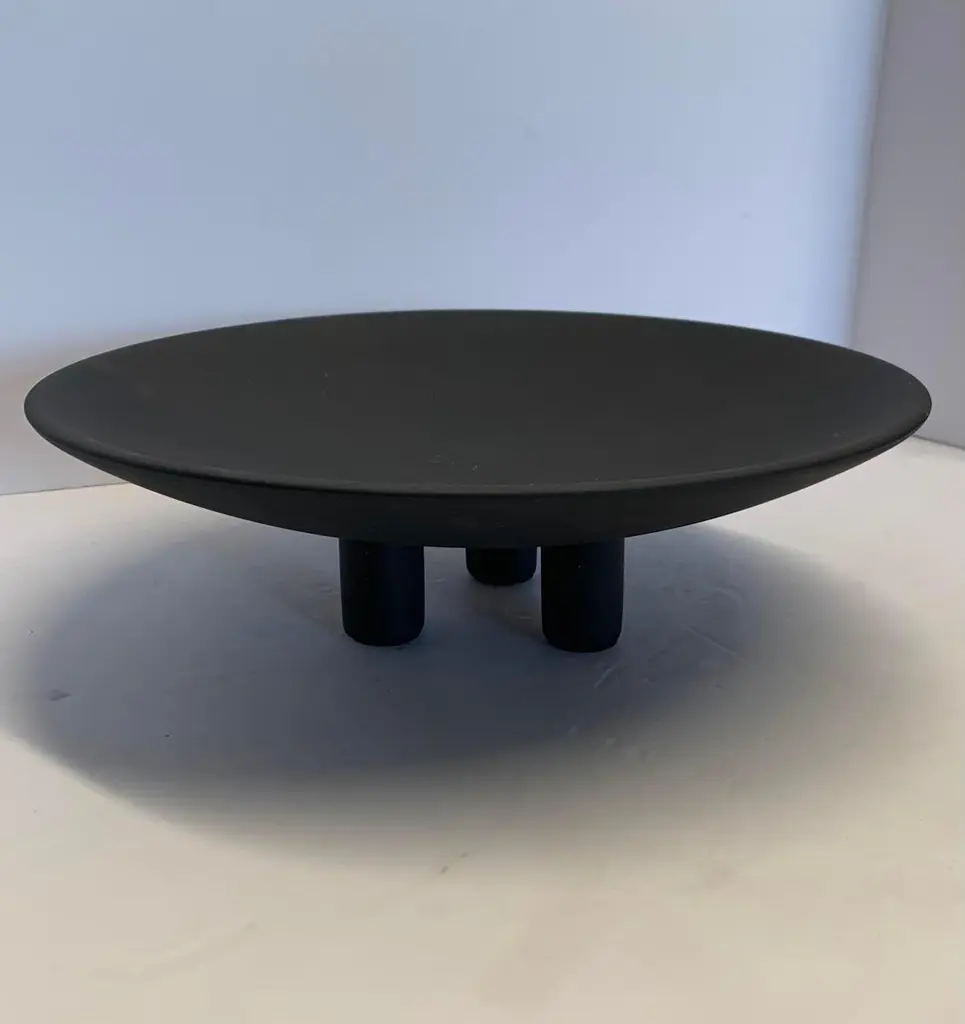Contemporary Danish design mini round footed platter.Base is three cylinder shapes.Matte dark coffee colored glaze.Larger sizes also available (S6623 and S6624 ).One of a collection of many shapes and sizes.