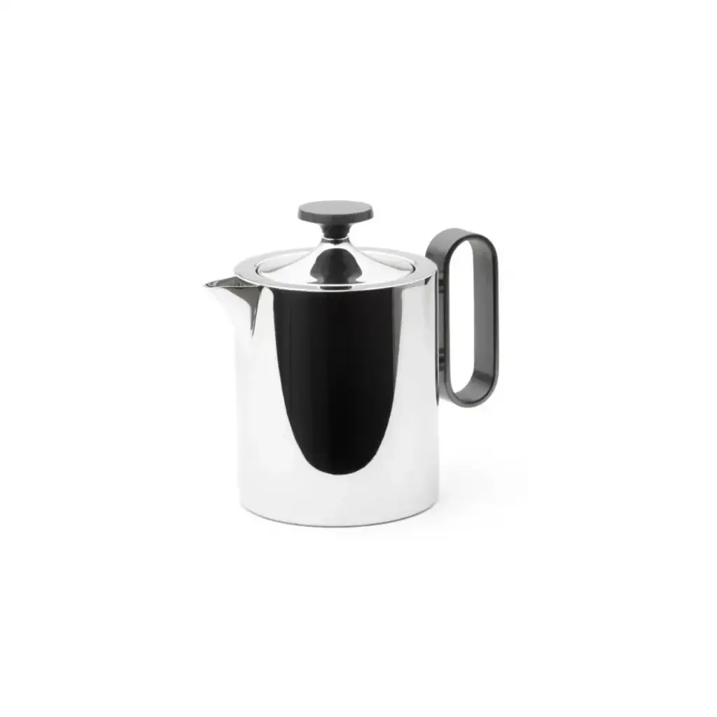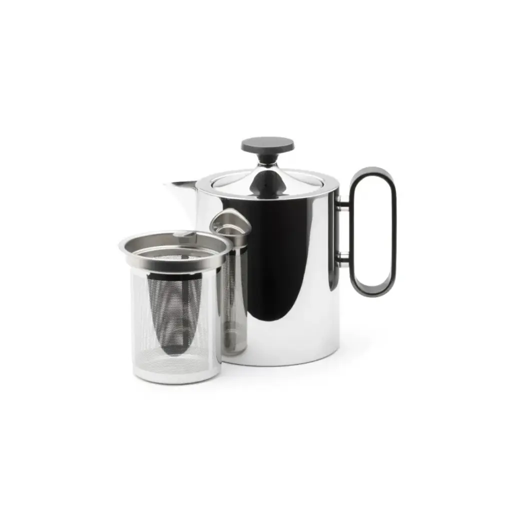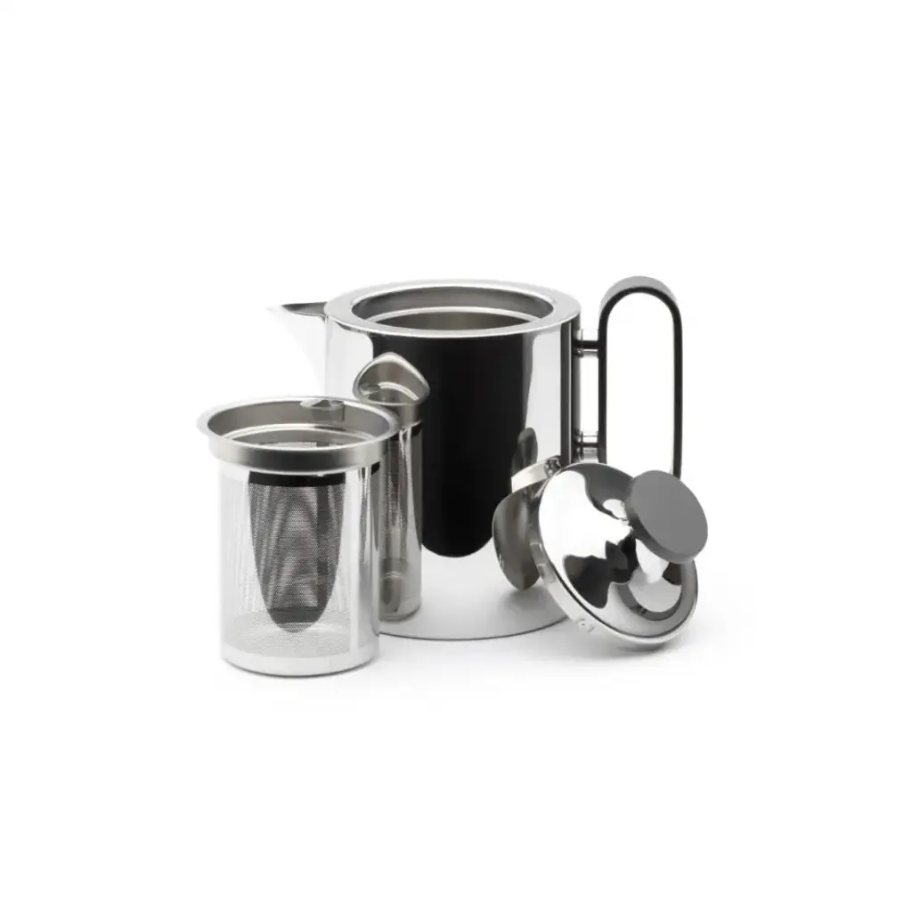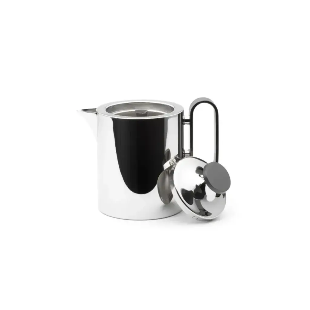 New for 2023 is this elegant stainless-steel 1 litre teapot, designed by Corin Mellor and perfectly in keeping with the company’s long tradition of fine metalwork design. The range is an extension of his existing superb cafetière design, to include a matching teapot, cream jug and sugar pot with lid. Each item is flawlessly manufactured and highly polished, with the option of a titanium-coated grey finish on the knob and handle. There is also a steel or grey toast rack, and a round tray completes the ensemble.