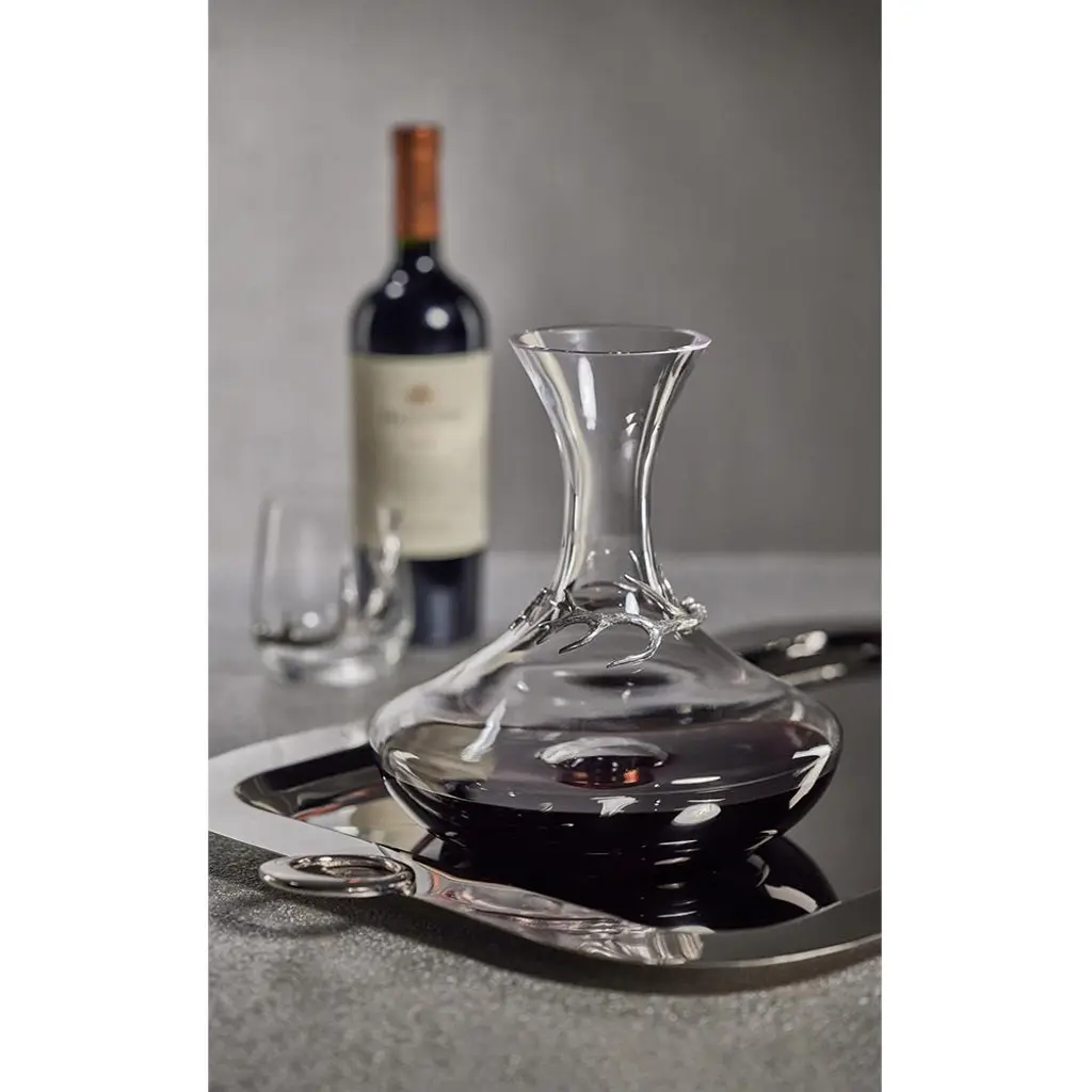 David Rustic Lodge Clear Glass Pewter Antler Accent Decanter