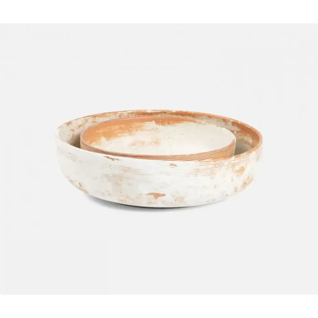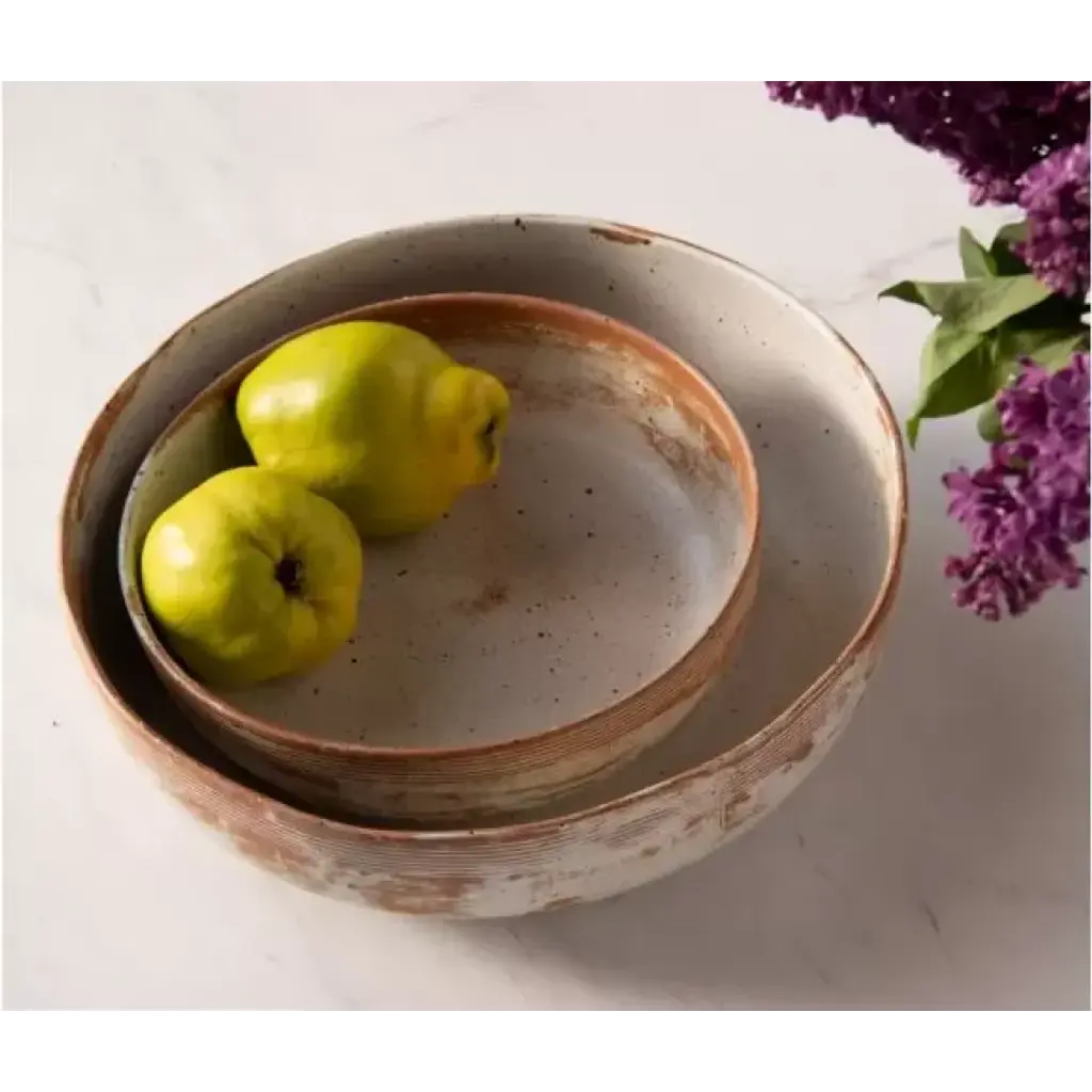 Dawson Large Rustic White Round Serving Bowl, Pack Of 2