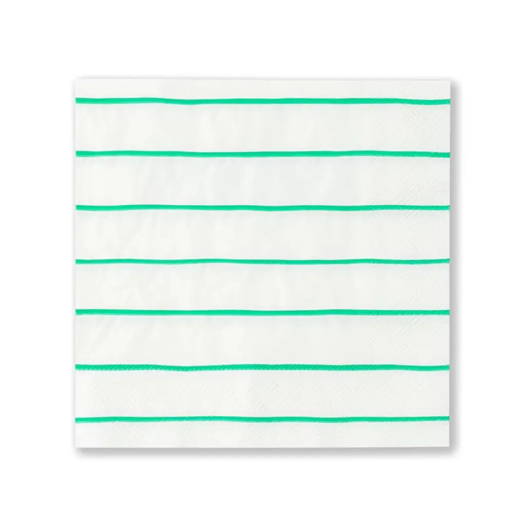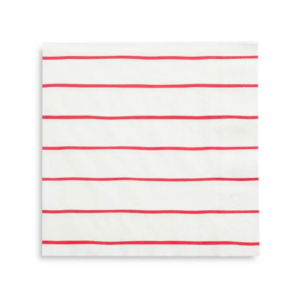 Ooh la la! Inspired by the iconic French Breton stripe, these striped napkins are anything but basic. Let them stand alone or mix and match with another pattern to create your own stylish party look! Package contains 16 paper napkinsEach napkin measures approximately 6.5 inchesNot safe for microwave use